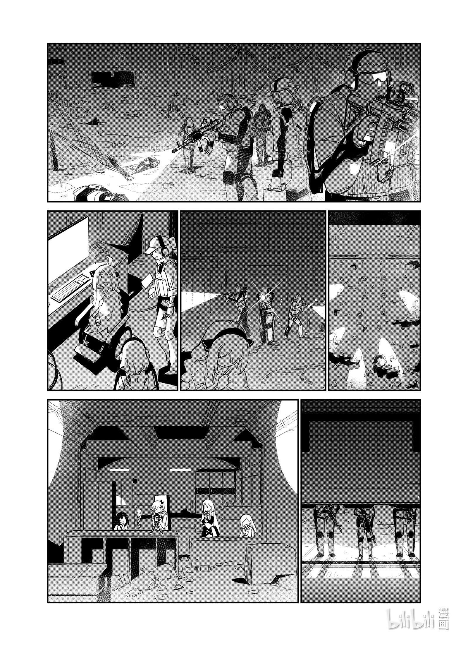 В сюжете манги постоянно получают небольшие бенефисы те или иные персонажи, почти не задействованные в игре. Это не камео на пару кадров, а небольшие линии, дающие им раскрыться. Приведу лучший подобный пример. В одной из глав сюжета происходит нападение на лечебный центр для рободевочек, которые могли быть заражены компьютерным вирусом. Такая очаровательная, но малоприметная героиня, как М45, является смотрителем комплекса. В игре у неё буквально пара реплик, в самом начале атаки её тяжело ранят и больше мы её не увидим.