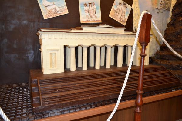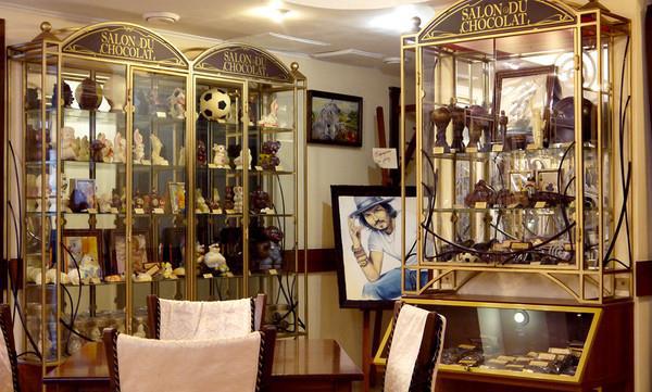 Площадь музея совсем небольшая – всего два зала. Экспозиционный зал, рассказывающий историю шоколада и салон. В салоне вы можете не только полюбоваться на удивительные шоколадные фигурки, но и попробовать все, что вам приглянулось в уютной обстановке. Чудо начинается сразу - входной билет в музей - шоколадный.