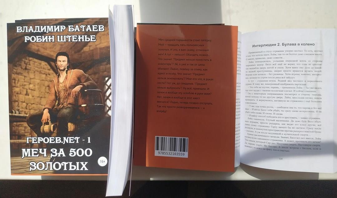 Автор: Владимир БатаевЗаказал на Литресе печать небольшого тиража (10 экз), чисто для себя (и соавтора) - на полку поставить и друзьям раздать. Ну и вот сегодня получил книжки. Увы, на Литресе печать только в мягкой обложке, но зато недорого. Формат А5, чуть больше стандартных издательских книжек. Бумага белая, печать хорошая. А больше сказать особо и нечего.