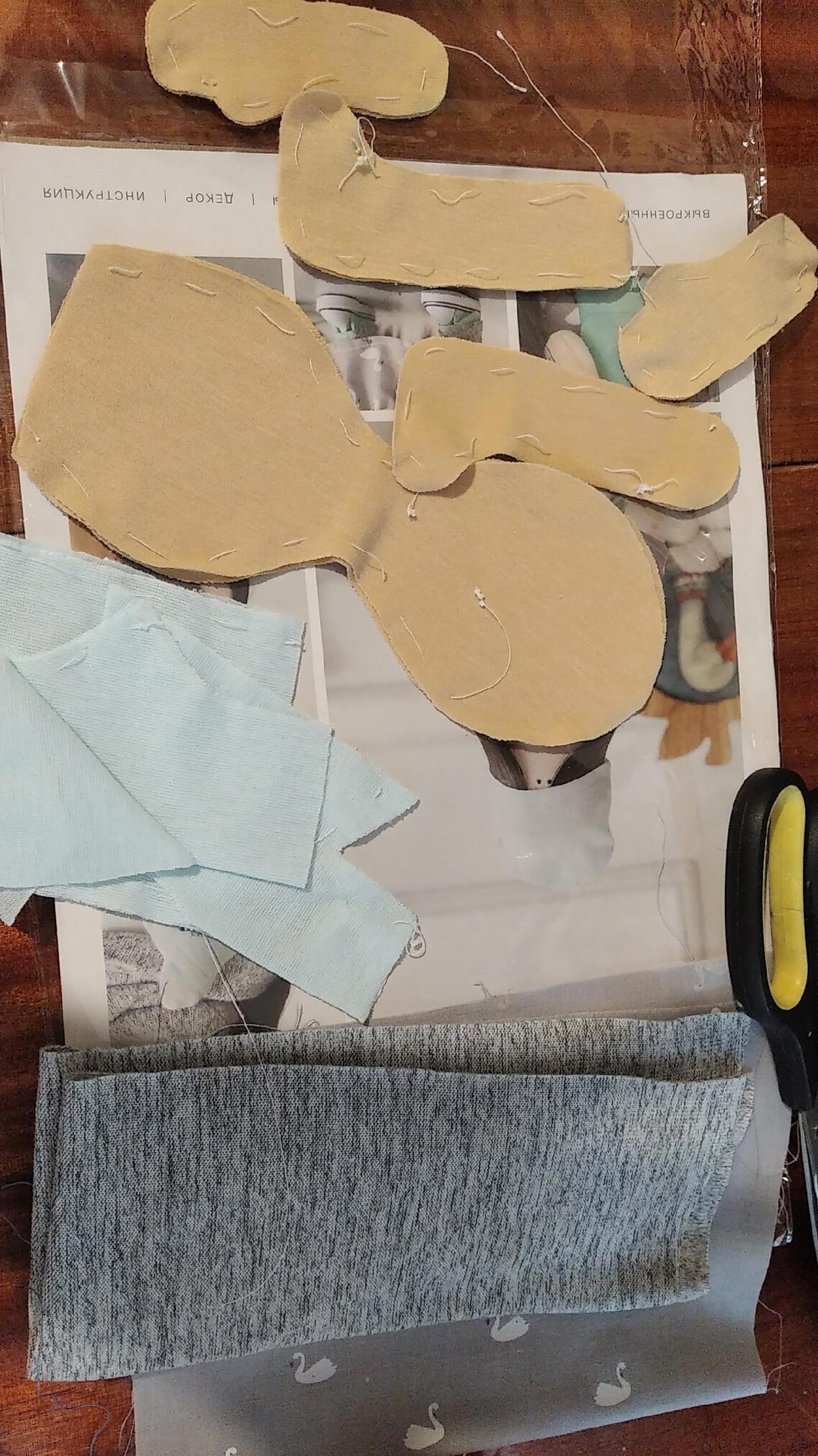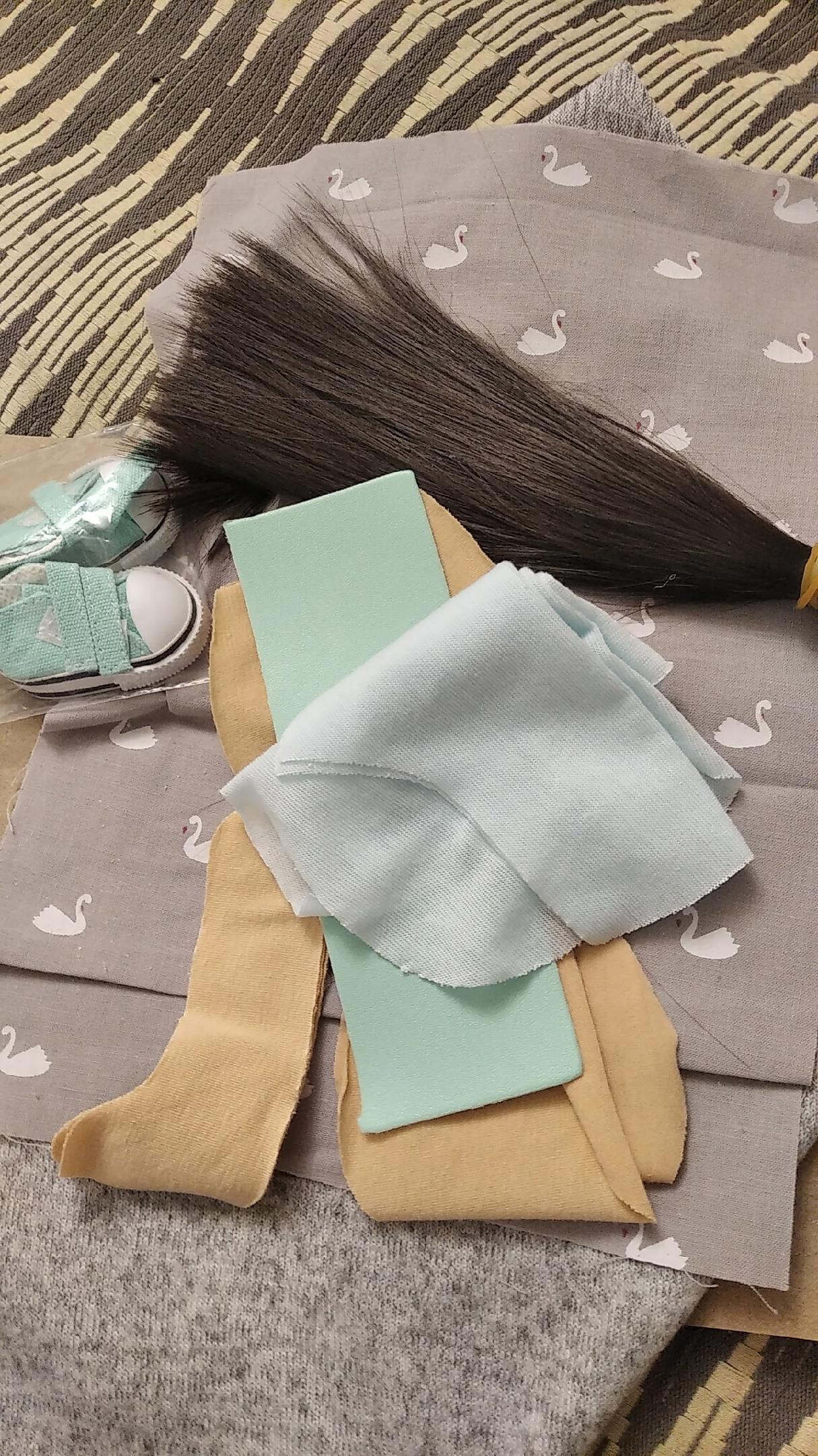 На просторах маркетплейсов я откопала набор для шитья куклы, где уже все сразу в комплекте, нужно лишь сшить детали по инструкции. Для некоторых вещей понадобилась раскройка, но она простая - просто отмерить несколько прямоугольников нужного размера.