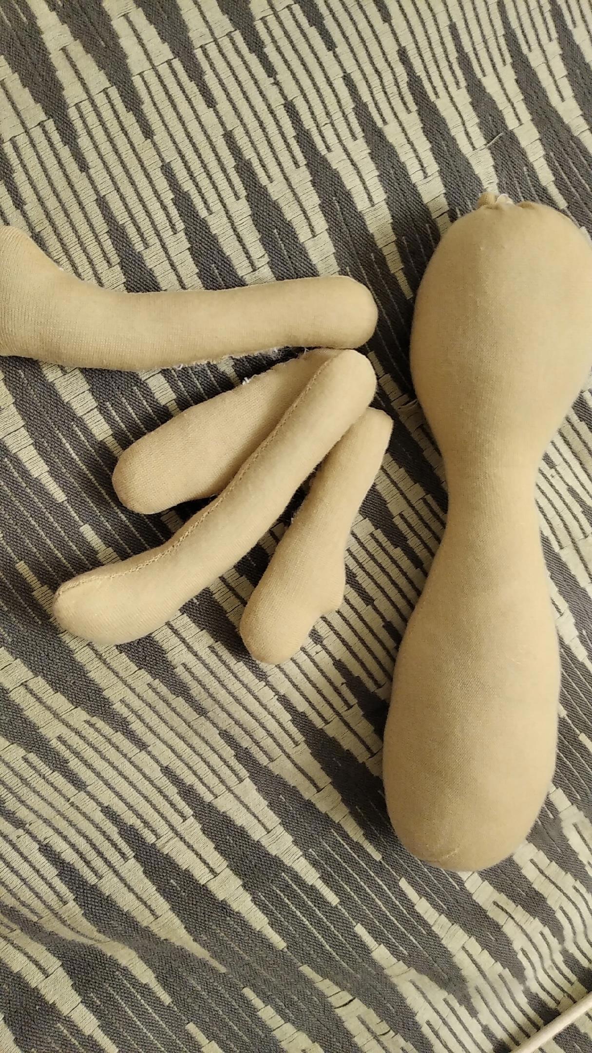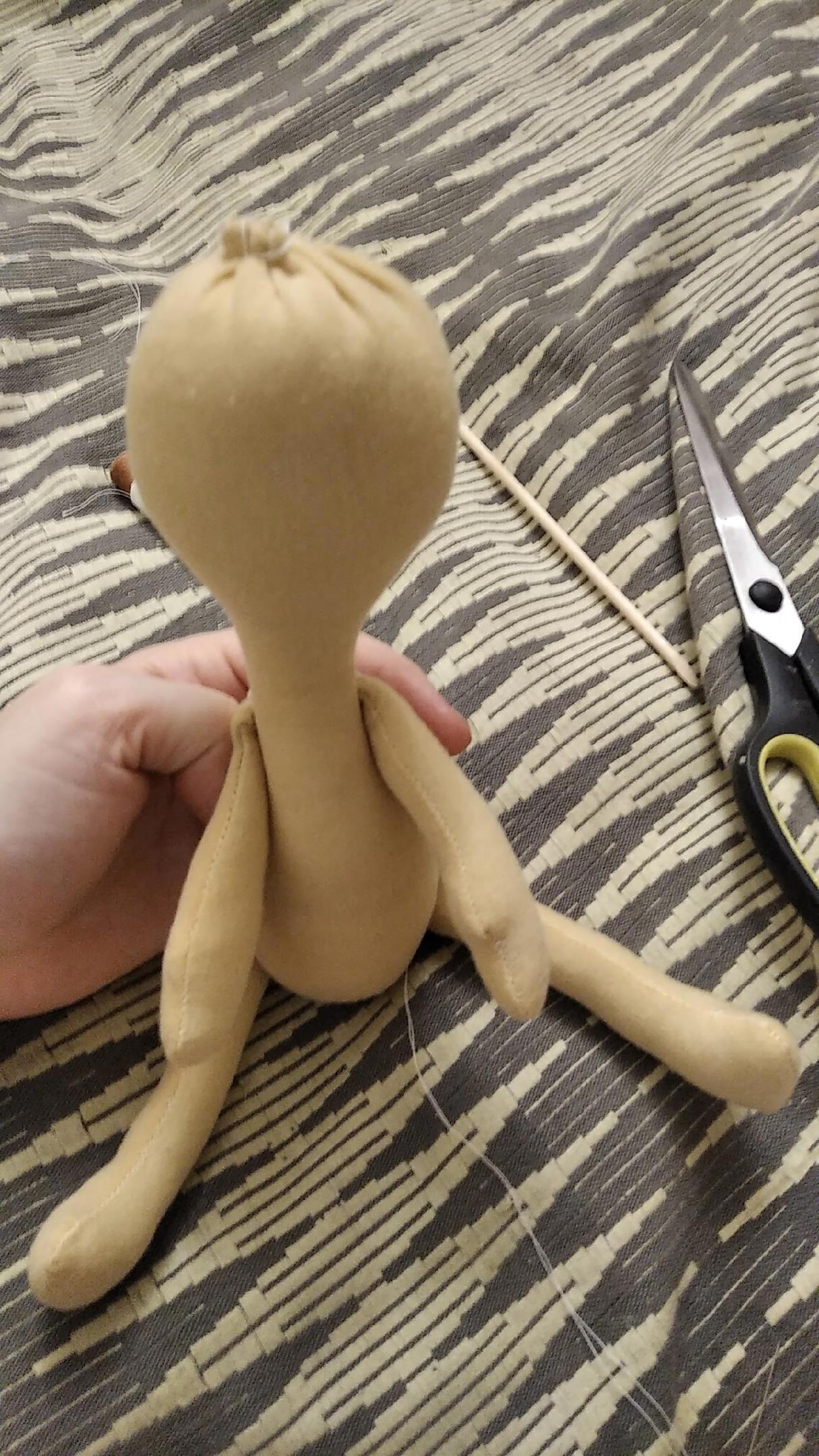 Вывернув их, я напихала туда плюш и зашила потайным швом. Дырки старалась делать в задней верхней части детальки - спереди все неровности не будет видно, а также они будут спрятаны под одеждой.