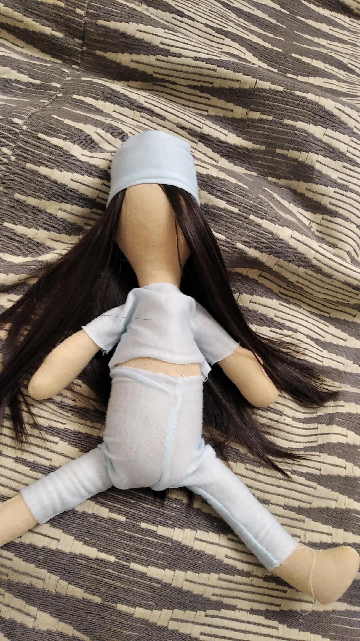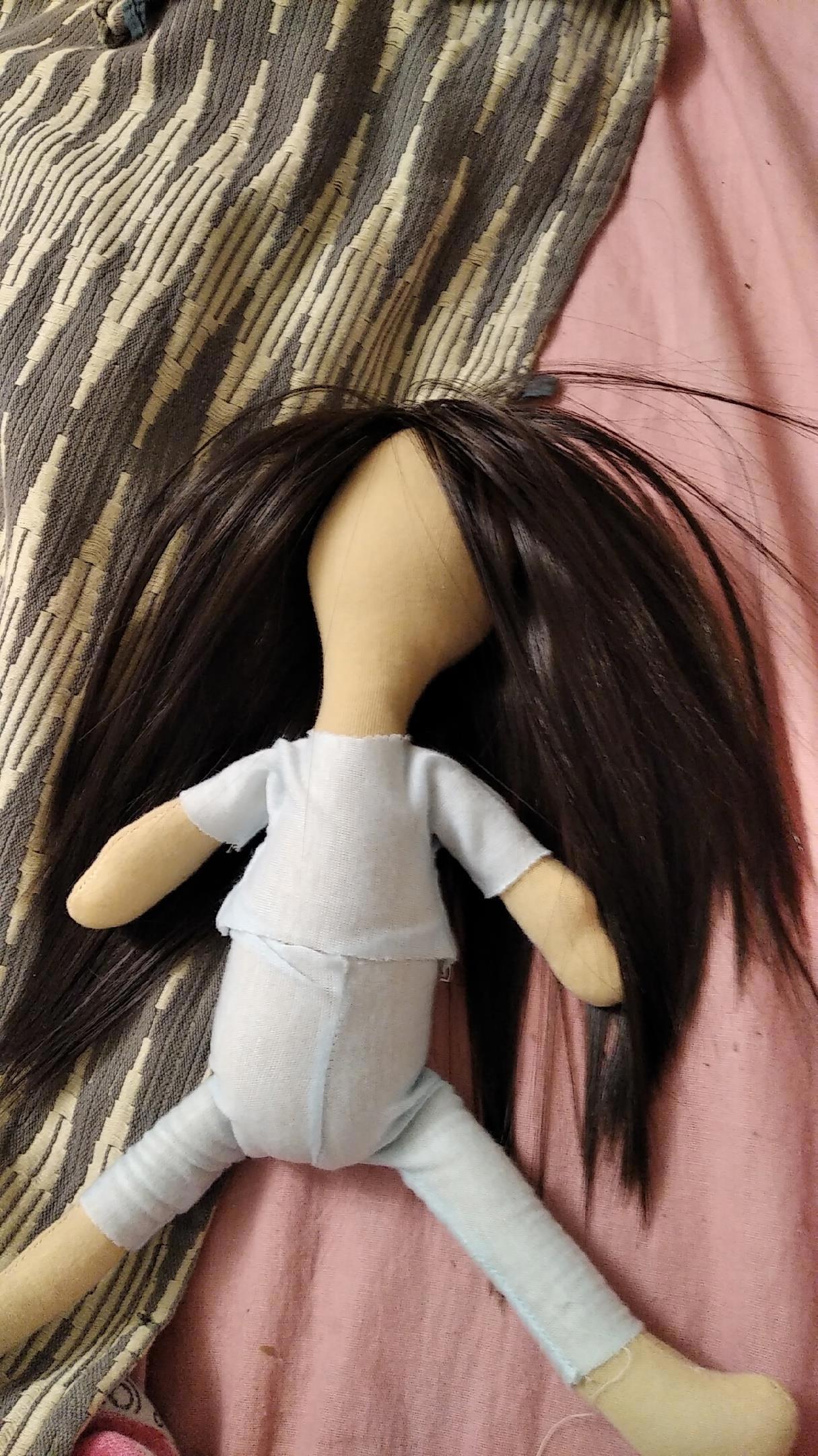 Сшиваем детальки "нижней одежды, а также налепляем волосы. Получается уже почти не вуду)