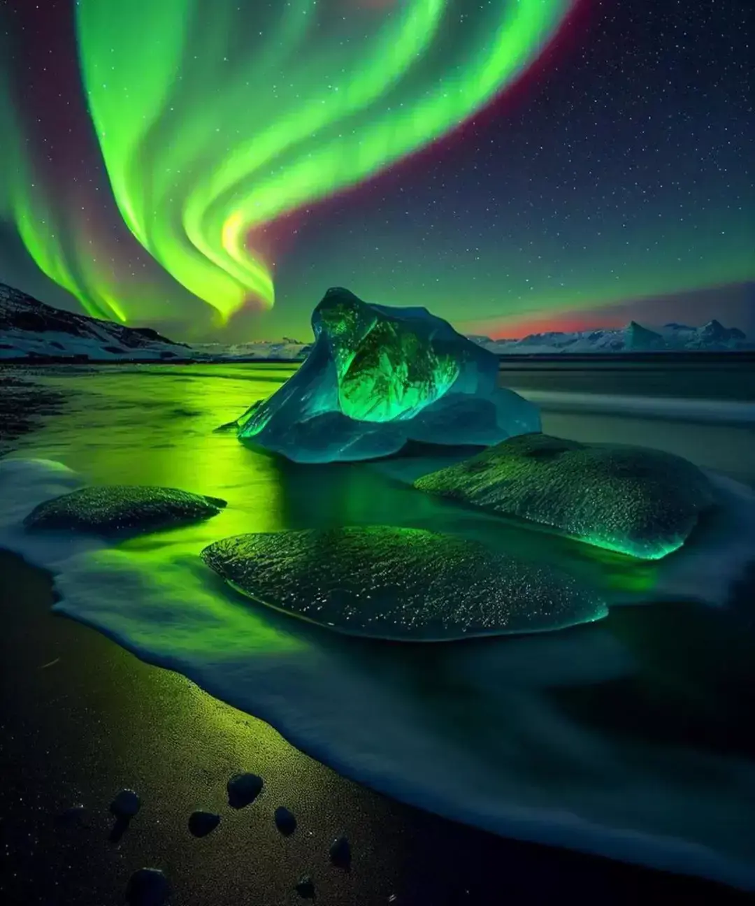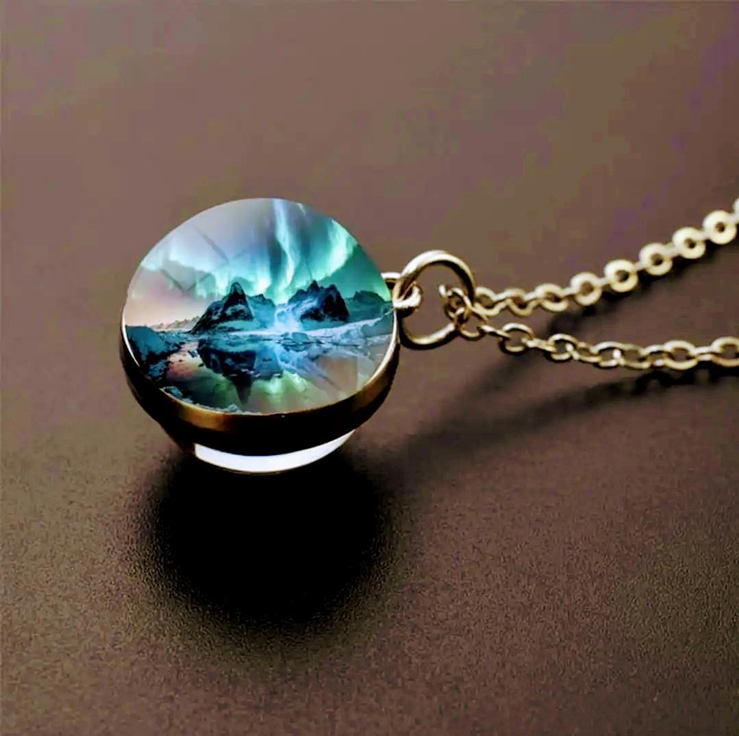 N.B. И в заключение, несколько картин и ожерелий с запечетленными в них, полярными сияниями