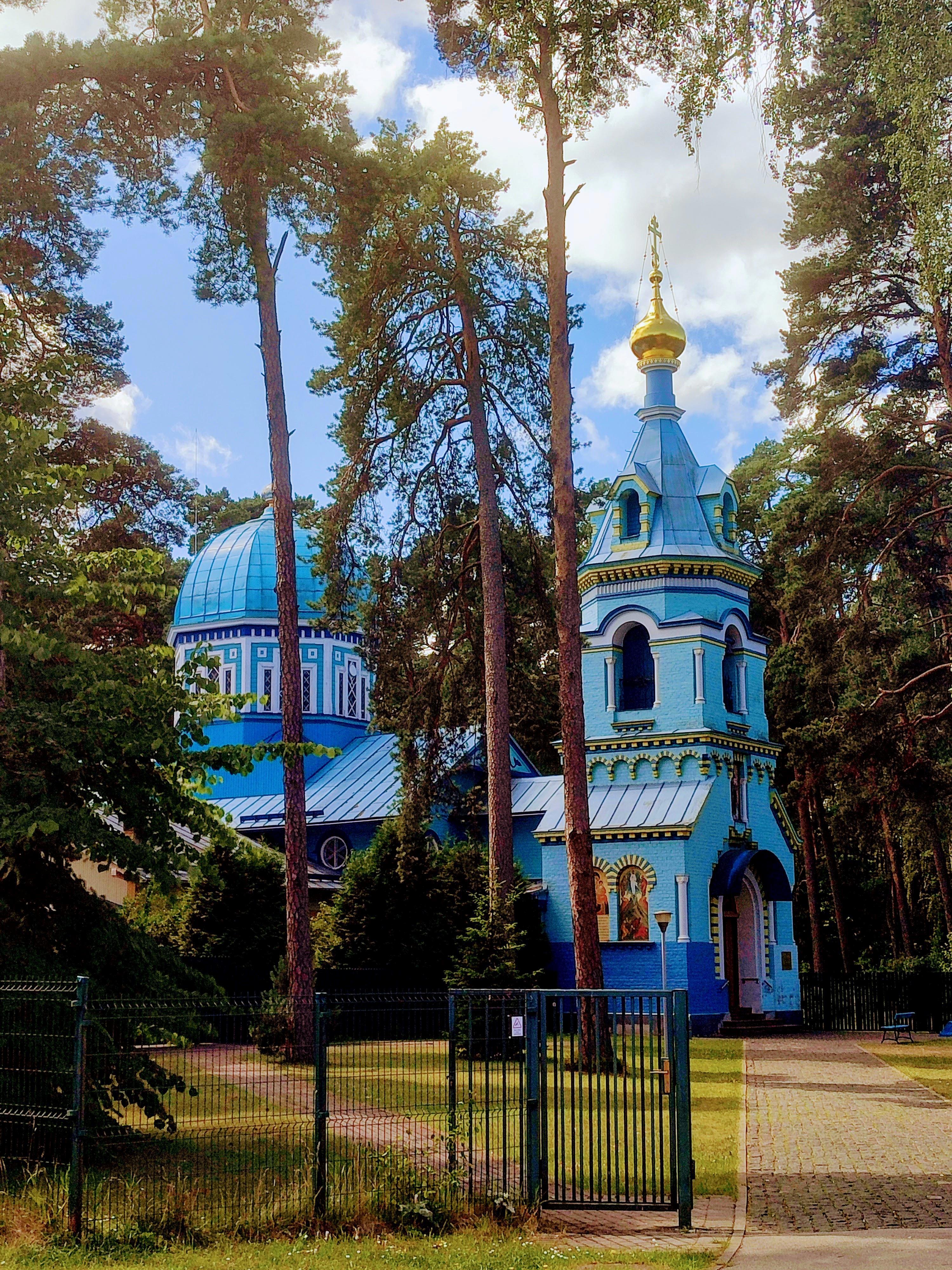 Это православная Князь-Владимирская церковь в Дубулты. Так называется станция в Юрмале, где находится дом писателей.