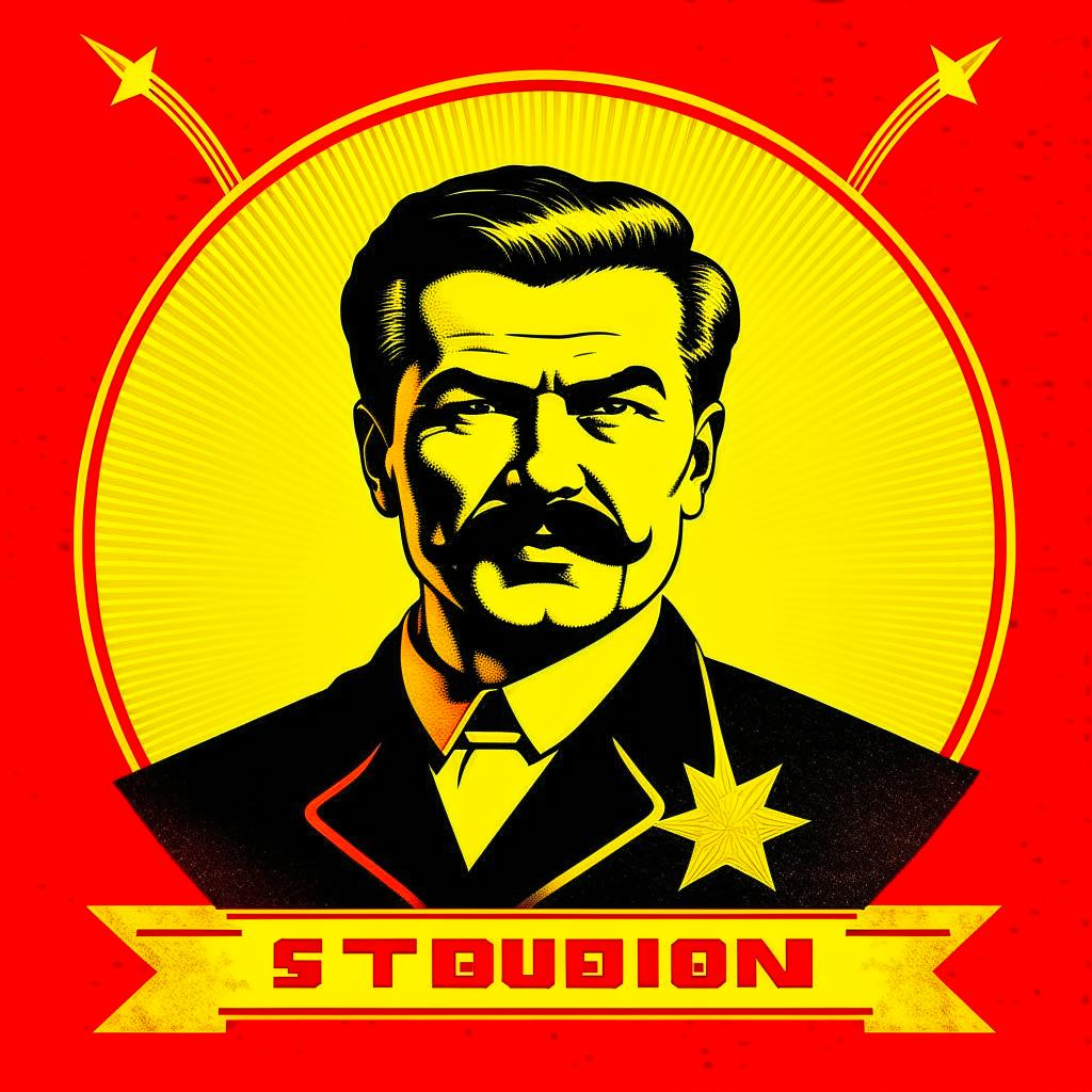 ну во-первых товарищ Сталин тут на себя не похож, даже не смотря на усы. Во-вторых он нарисован в стиле товарища Троцкого с логотипа KFC. А в-третьих что это за желтая шестиконечная звезда на груди? это что за намеки? и почему внизу написано "стадион"?