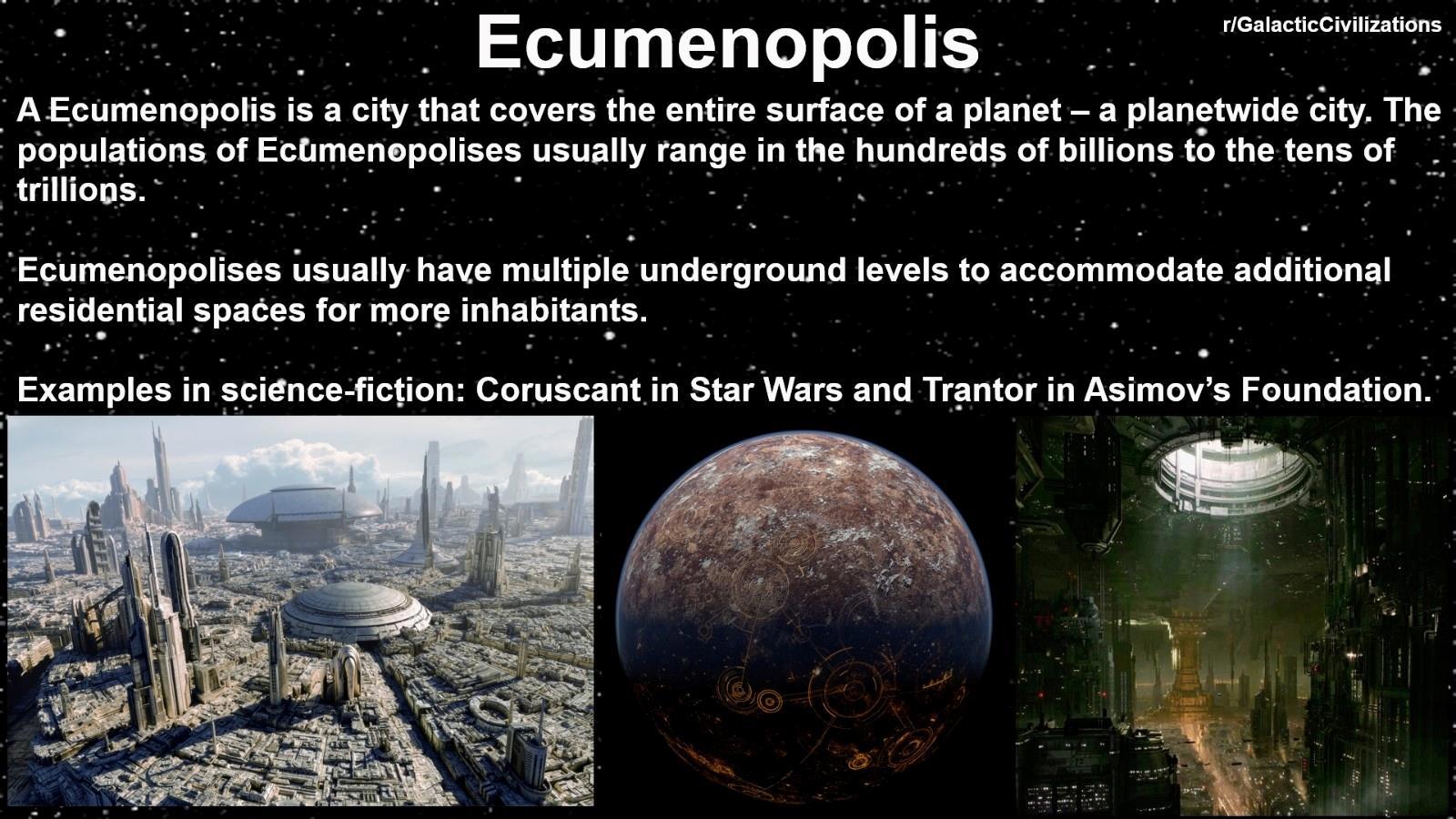 N.B. Наверное первое, что приходит в голову, когда мы слышим слово " Эйкуменрполис" это планета Корусант из Звездных Войн.