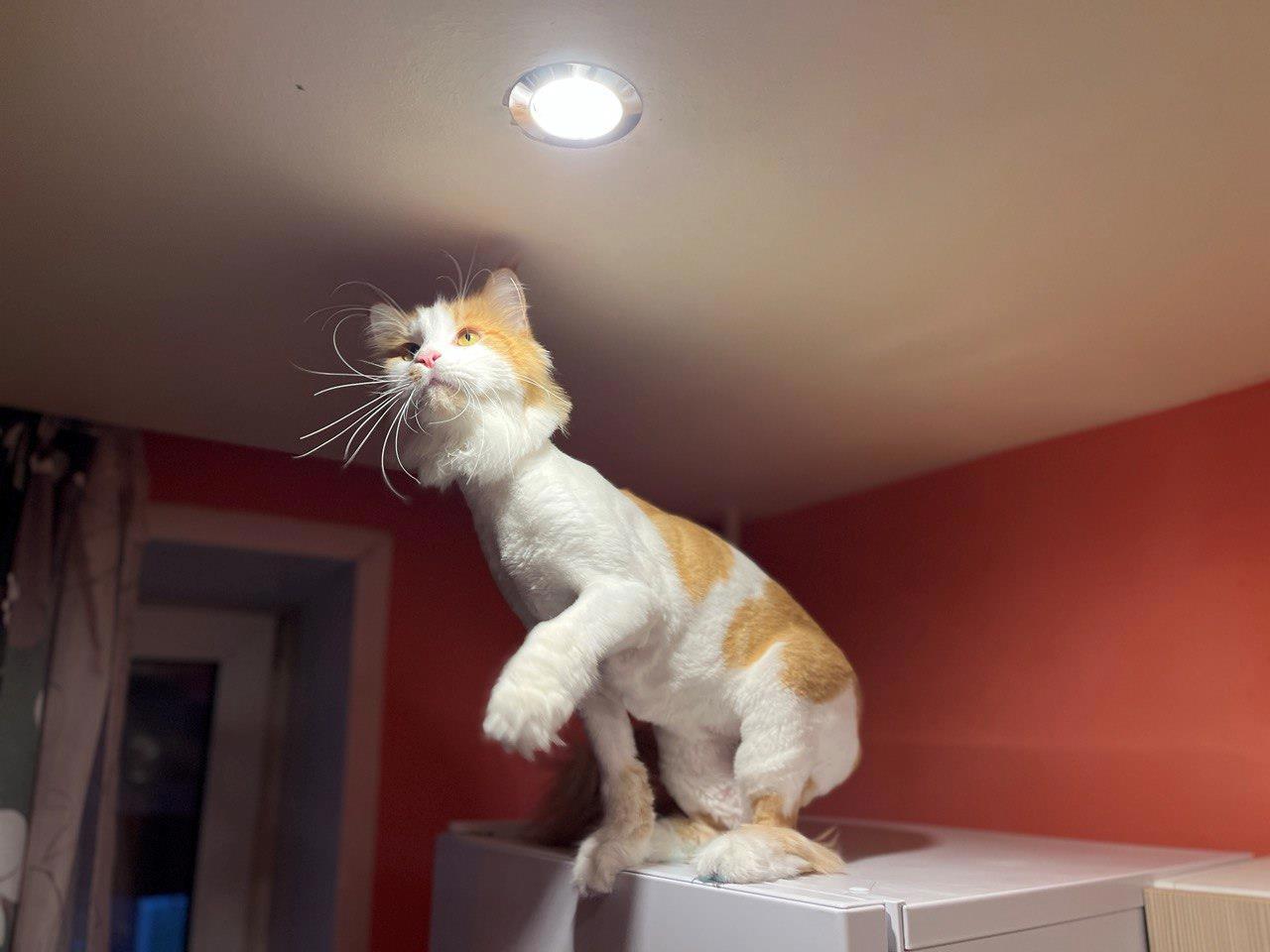 Иногда Кнопке везёт и в квартиру залетает мошка. Тогда начинается самая настоящая охота.