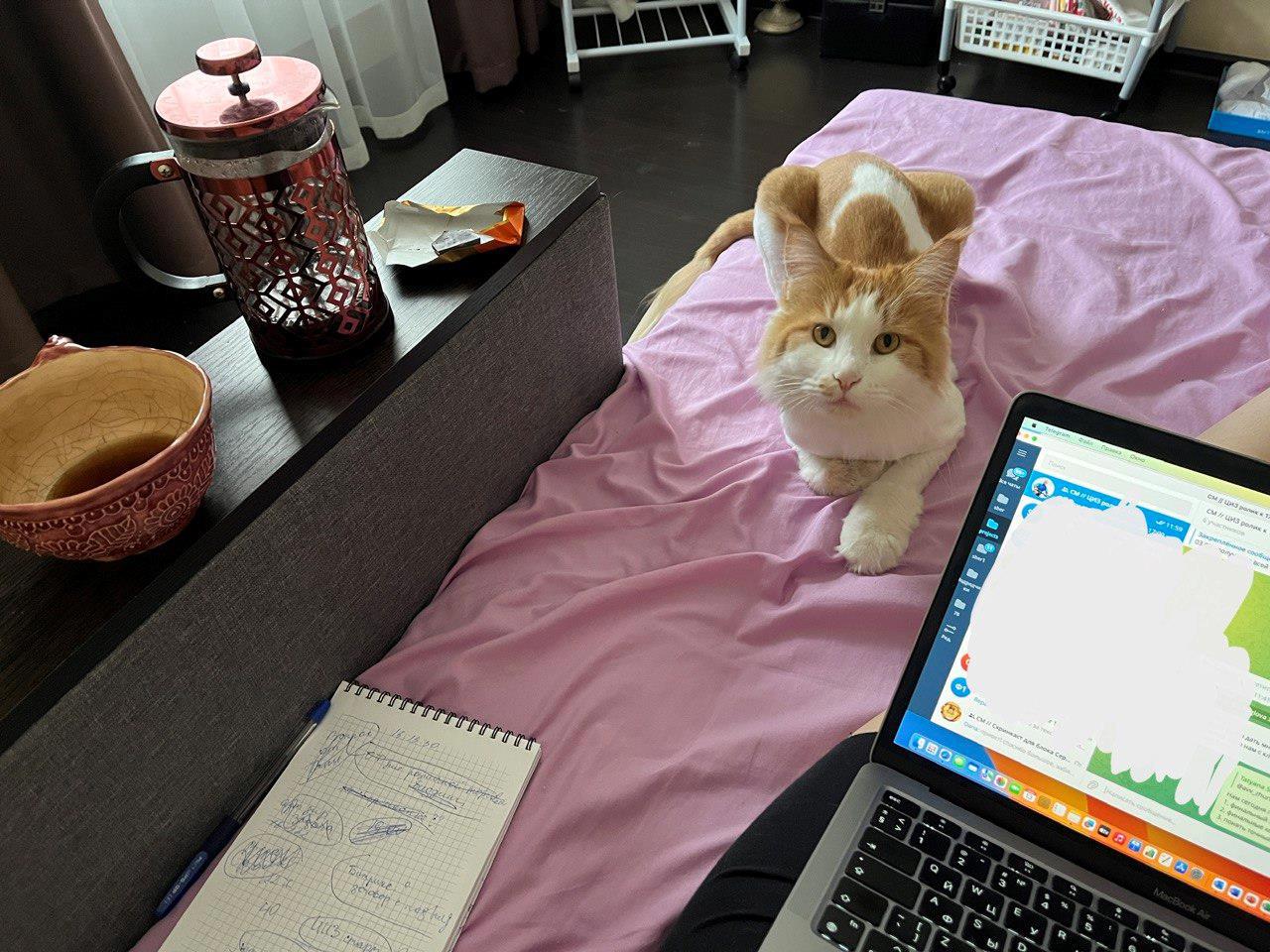В июле прибавился один день удалённой работы. Теперь их два. И Кнопка начала работать вместе со мной!