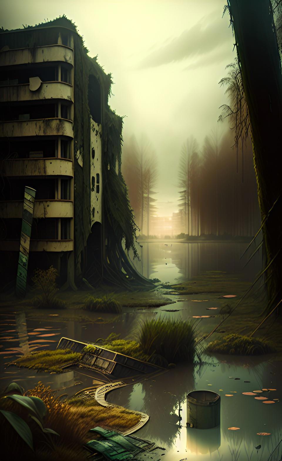Картинка с пейзажем Болотин нарисована нейросетью.
