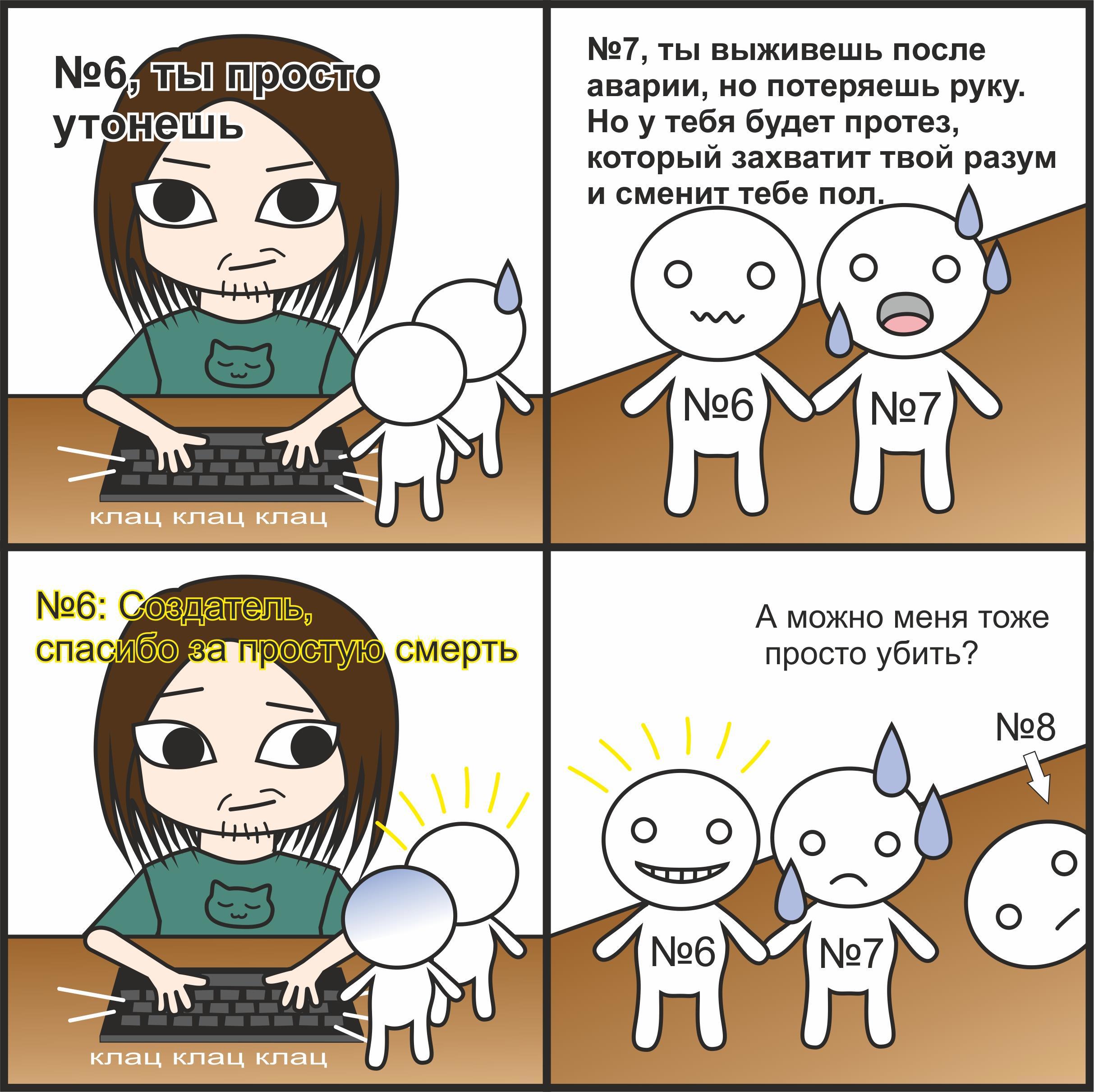 Подобный комикс уже был, ведь мои отношения с моими же персонажами остаются прежними. В большинстве случаев, я знаю, что их ждет в финале. И у многих финал нельзя назвать счастливым.