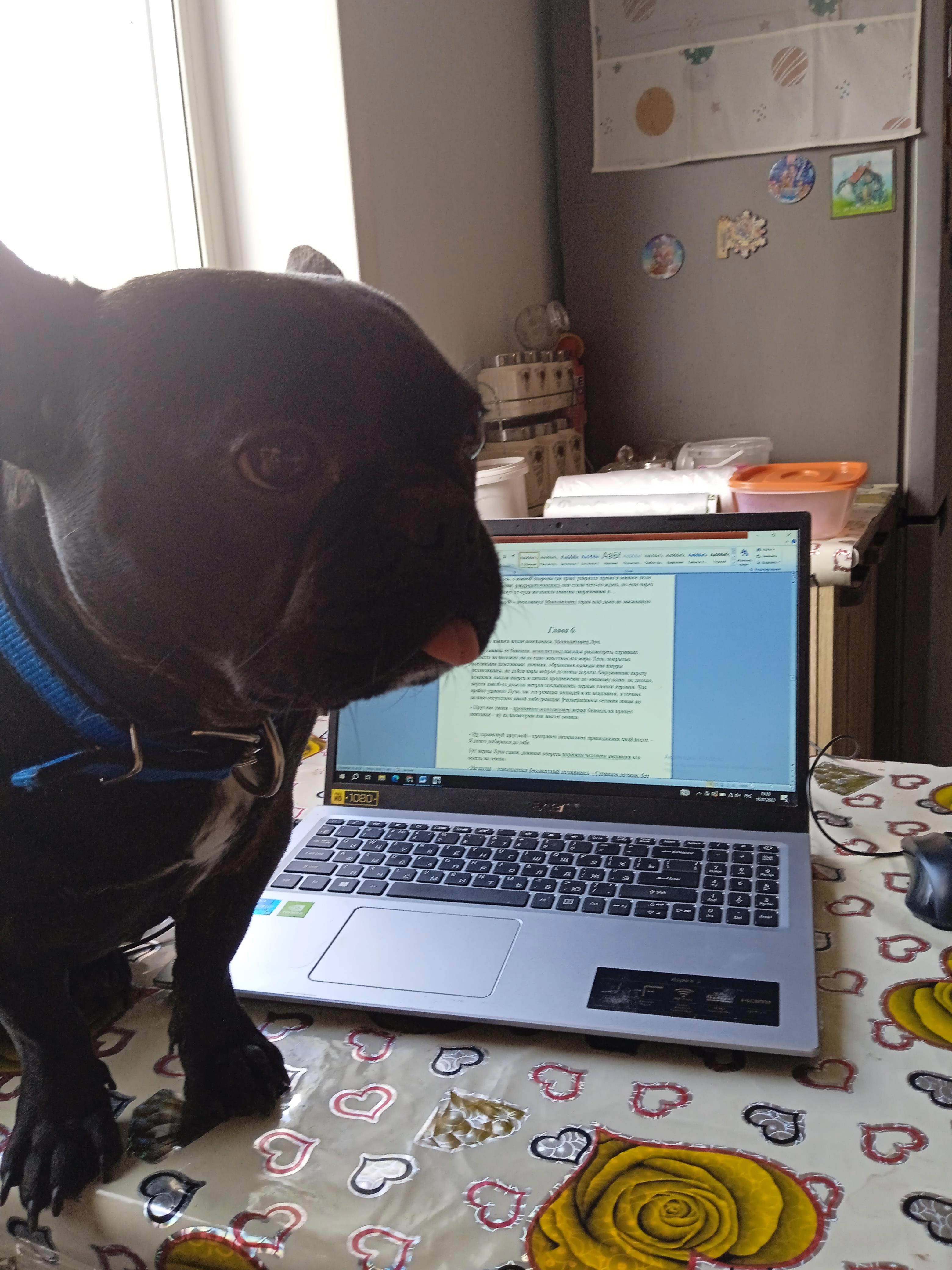 Сижу, я значит пишу, думаю, и тут она, и не выкинешь, ласки просит, пришлось полчаса чесать за ушком и терпеть облизывания