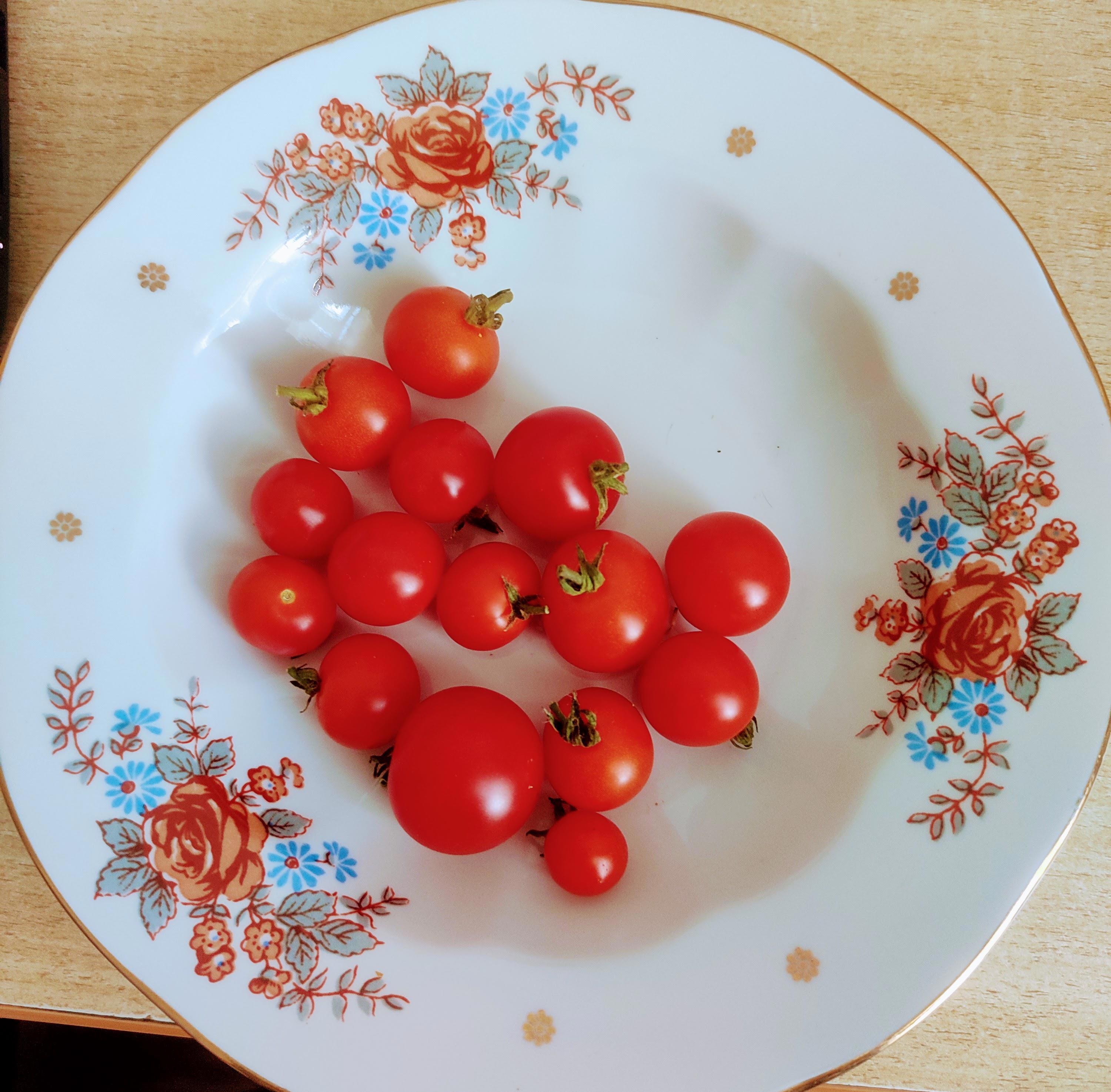 Проводила на электричку, отправила обратно в Ригу. Теперь сижу в обнимку с подарком: замечательной овальной фарфоровой чашечкой, из которой очень удобно пить кофе. И с горстью помидорок, которые выросли за время моего отсутствия у нас на лоджии.