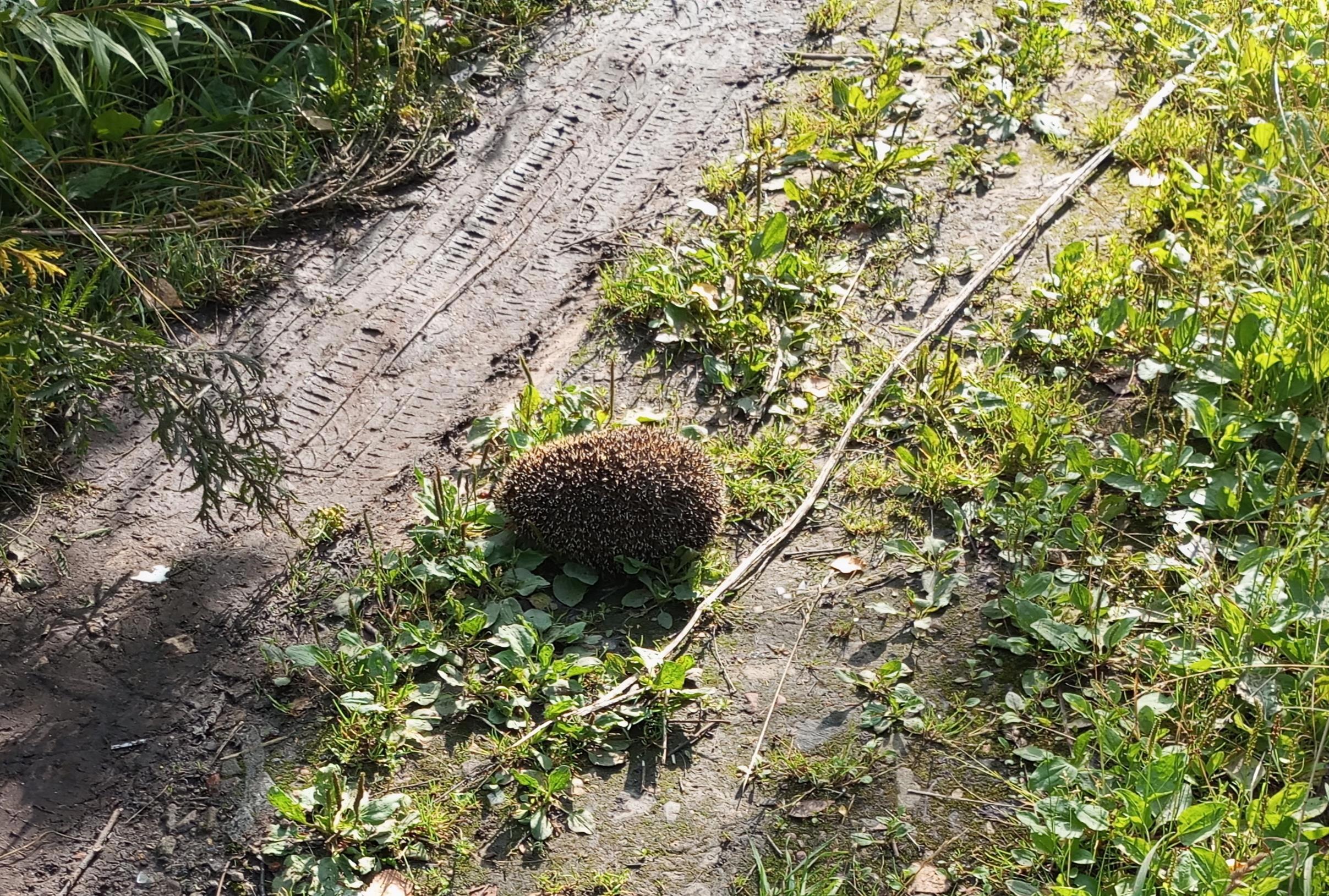 Грибов не обнаружил, пусто там, как в глобусе, но зато нашёл ёжика, вот такого