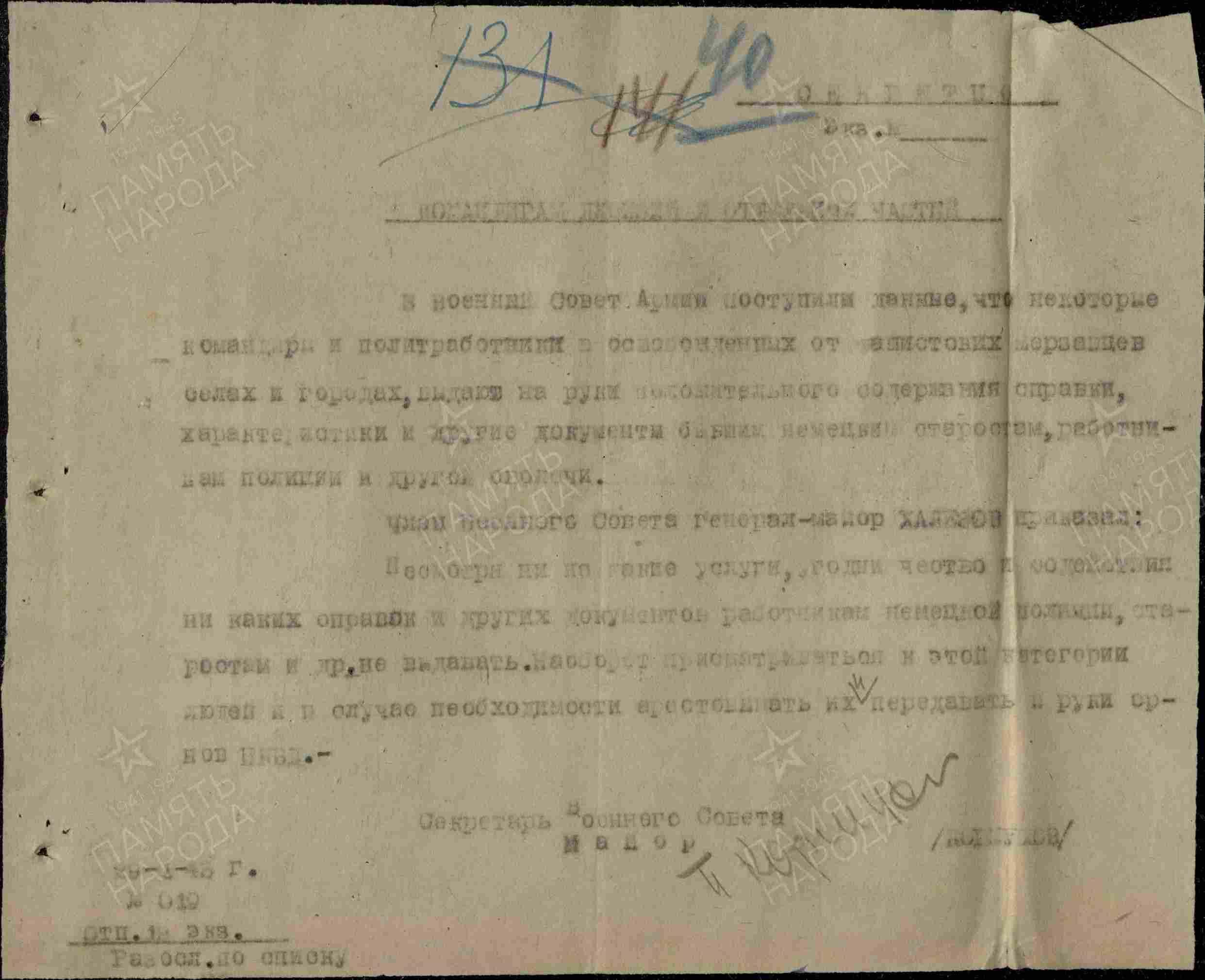 Автор: Андрей УлановКак известно, в хорошей бюрократии "без бумажки ты букашка". Однако в 1943 году бумажки с "положительным характеристиками", который командиры Красной Армии выдавали "старостам, полицаям и другой сволочи", вызвали у Военного Совета армии легкое офигение.