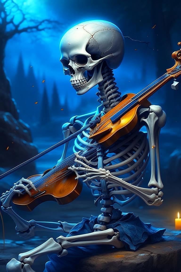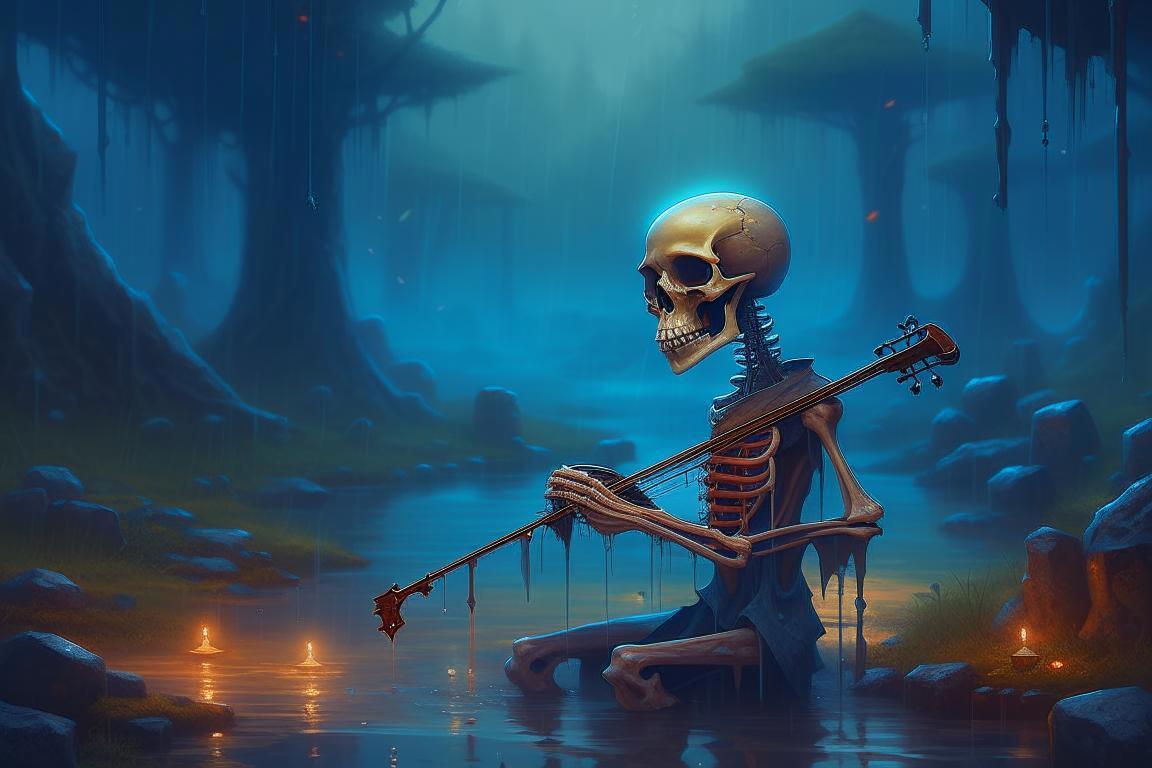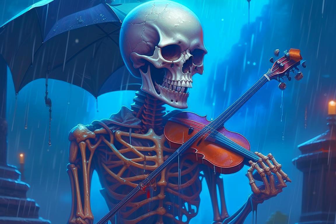 Теперь скелет-скрипач снова у нас на слуху, и по нему прошлись мощями нейросети, которая любит... ну, разные вещи любит, вы знаете. Неожиданные руки это еще так, баловство.