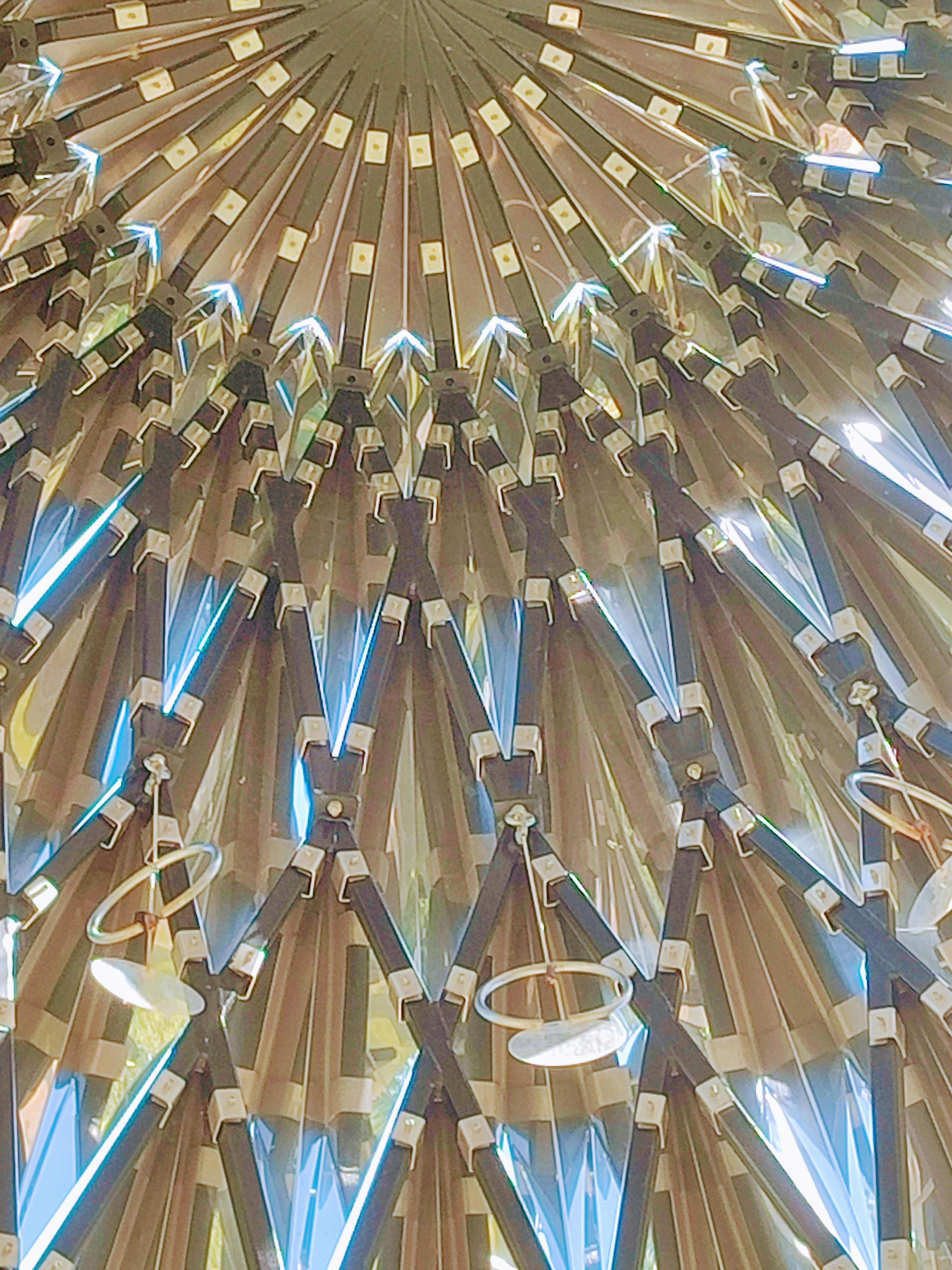 И удалось поймать подвески, создающие нежный перезвон в "шишке для медитации". Может, у этого арт-объекта есть какое-то другое, более красивое название, но шишка ему подходит, как нельзя лучше.