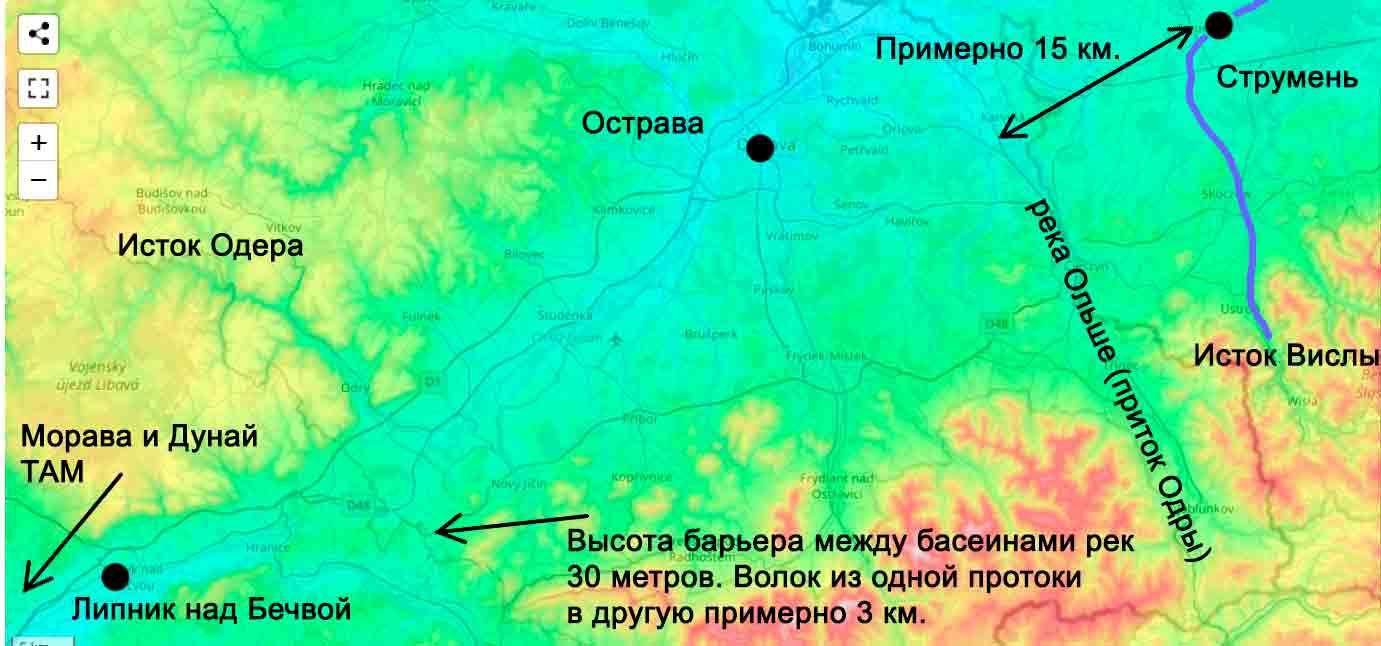 Примечание. Путь из Одера в Мораву реально существовал и был одним из путей "из варяг в греки"