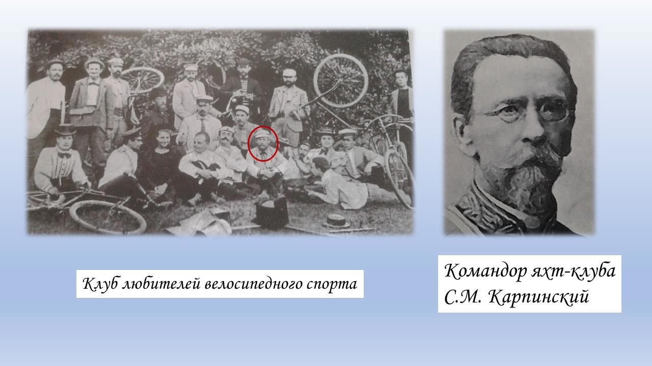 С.М. Карпинский был уникальной личностью, действительный статский советник, член статистического комитета, директор учительской семинарии, а еще один из первых спортсменов Воронежа, член клуба велосипедистов, организатор велогонок, кроссов. Много лет Карпинский являлся командором Петровского яхт-клуба. Яхт клуб располагался в историческом здании цейхгаузе Петра Первого (к сожалению в годы ВОВ цейхгауз был разрушен до основания). Члены клуба носили красивые мундиры, проводили исторические изыскания по истории российского флота и организовывали настоящие регаты. Призом служили карманные часы, которые покупались вскладчину.