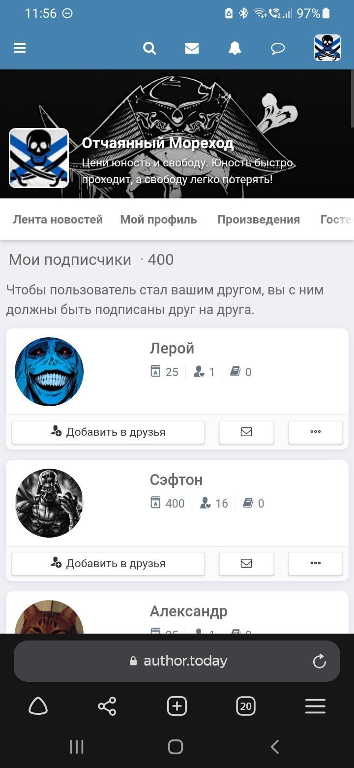 Автор: Отчаянный МореходПоздравляю, нас четыре сотни! Неплохо, неплохо. Весьма знаменательно! Ну, вот и всё об этом событии! Вы только знайте: чем вас больше, тем я активней! Но это не точно!