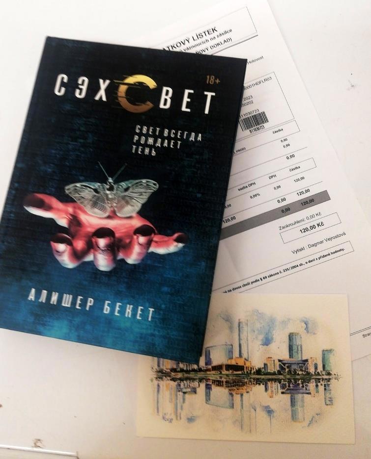 Примерно с марта 2023 почта начала бегать шустрее. Уже международная пауза длится не более двух недель, зато чешские таможенники придумали себе красивый бузинесс: за почту из РФ будете платить налог на ручную обработку посылки. Вот сейчас я получила подарок от Алишера Бекета из Ебурга — его книгу «Сэхсвет»