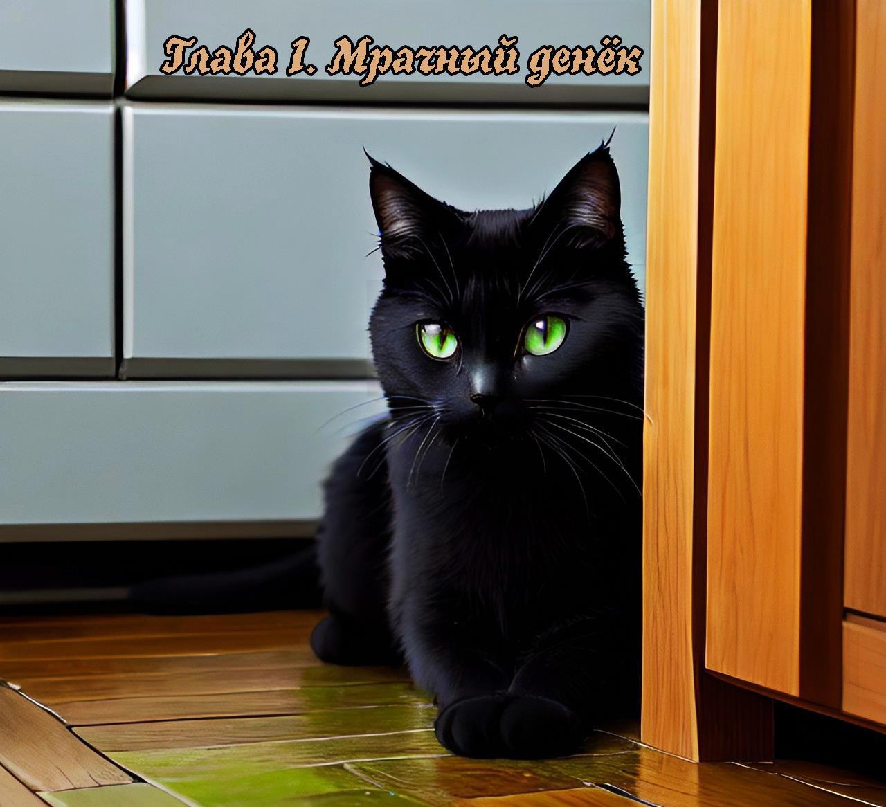 Большой пушистый кот вцепился в рыбу и с урчанием посмотрел зелёными глазами на мальчика.