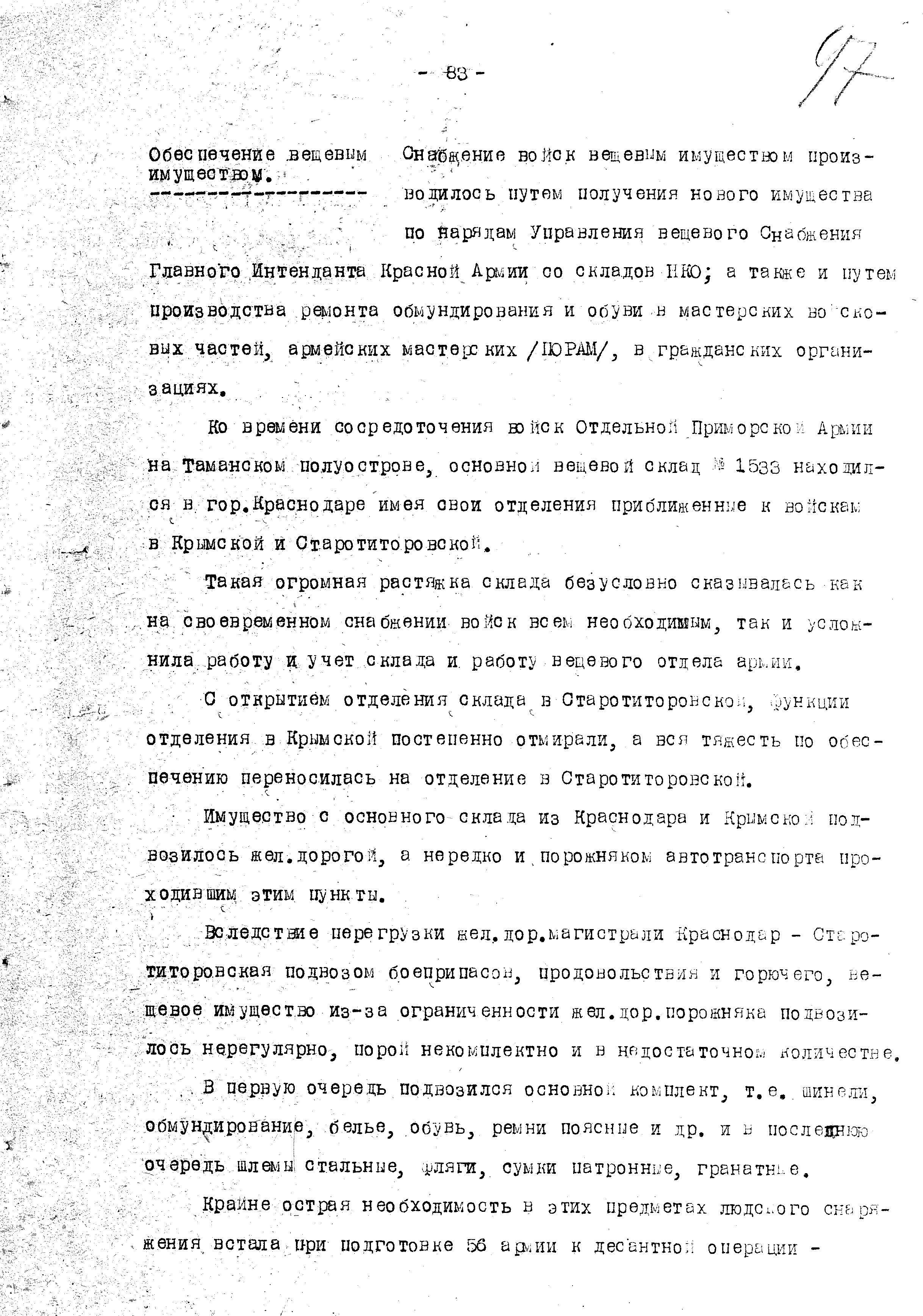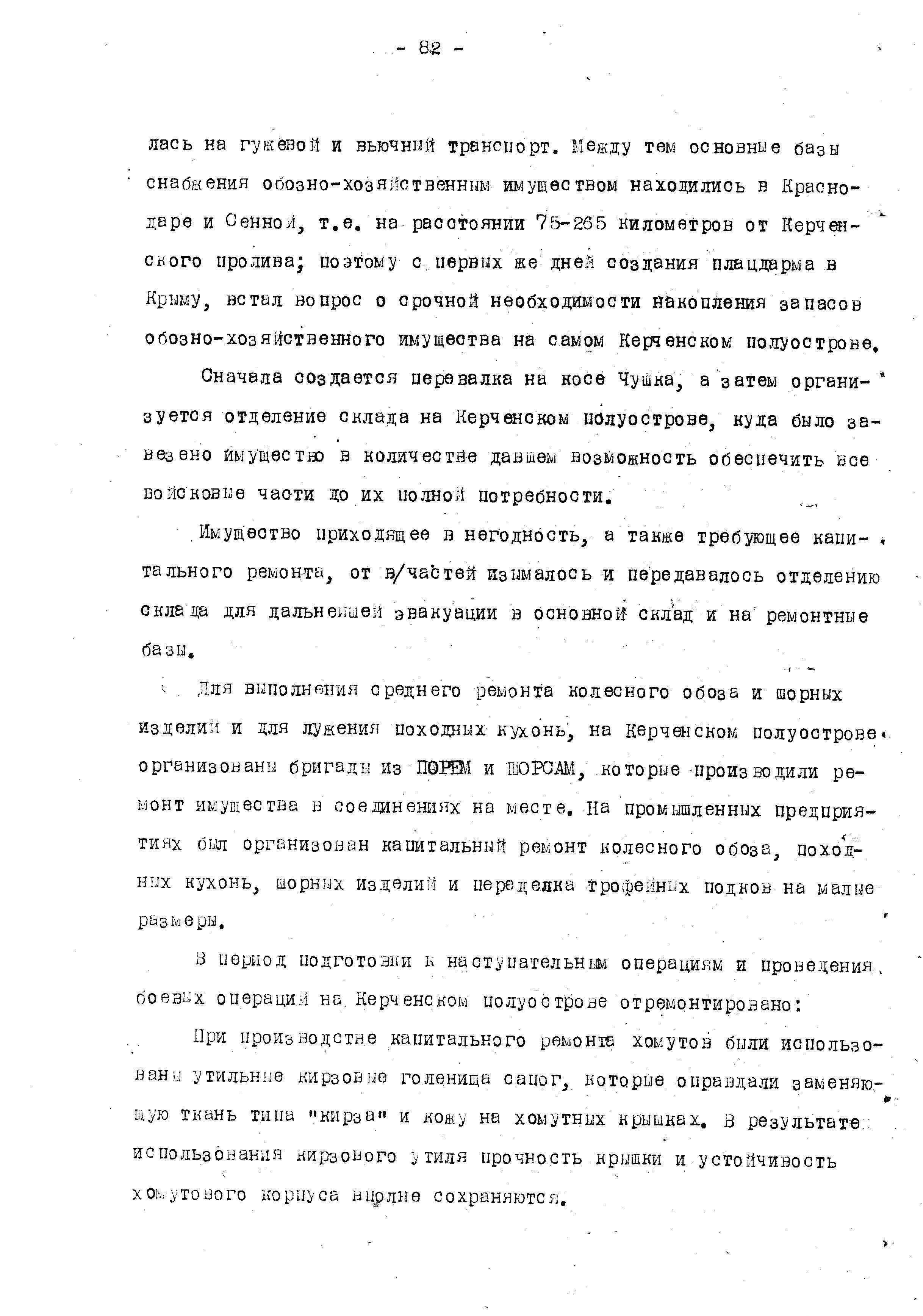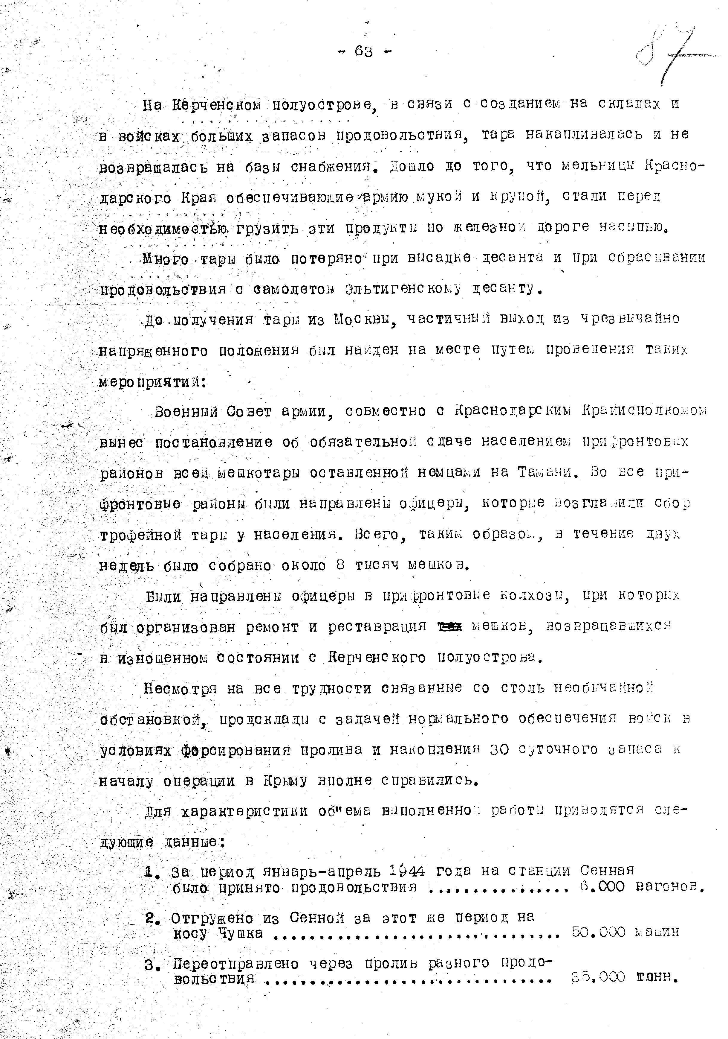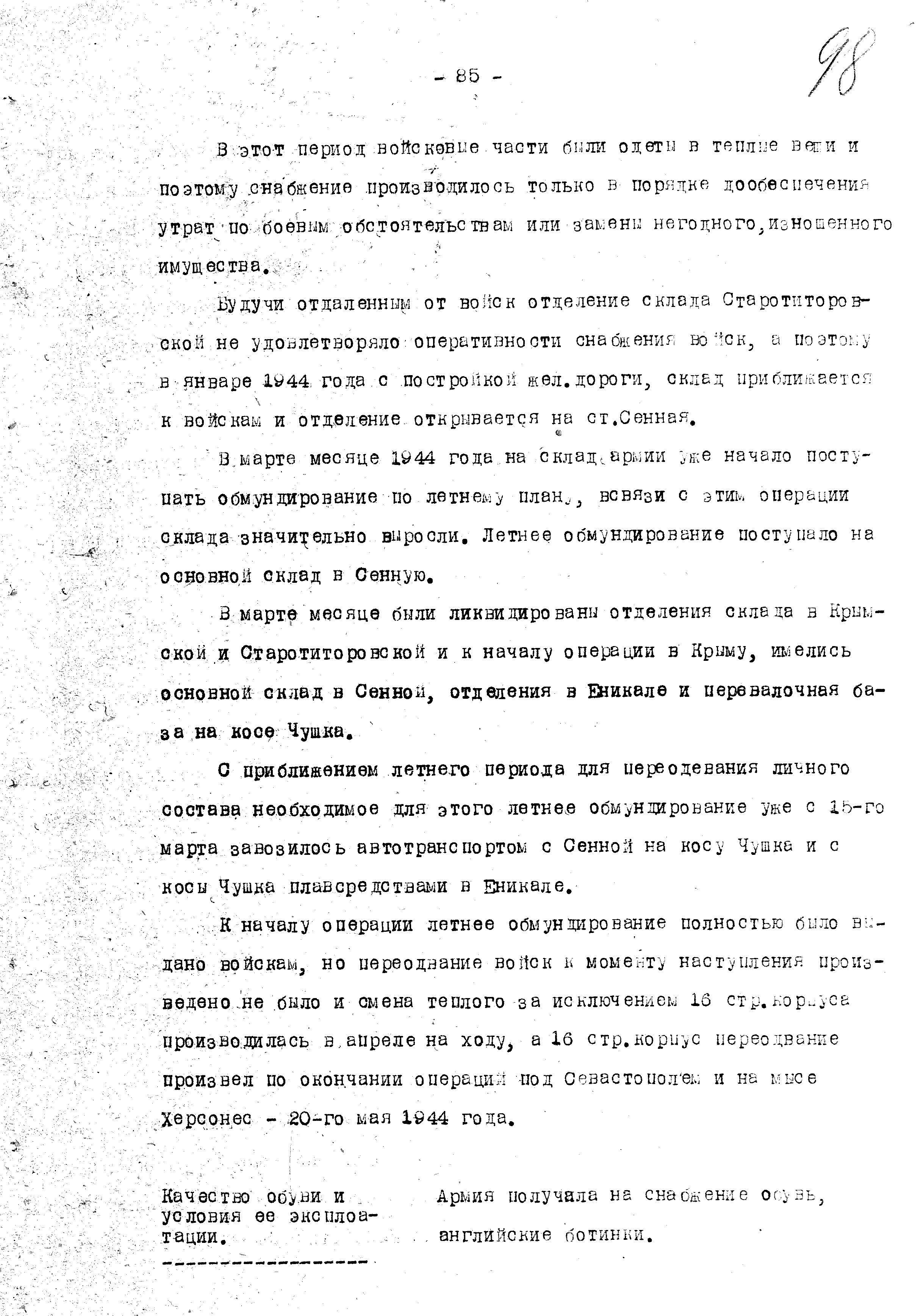 Интендантское обеспечение боев Приморской Армии при освобождение Крыма.