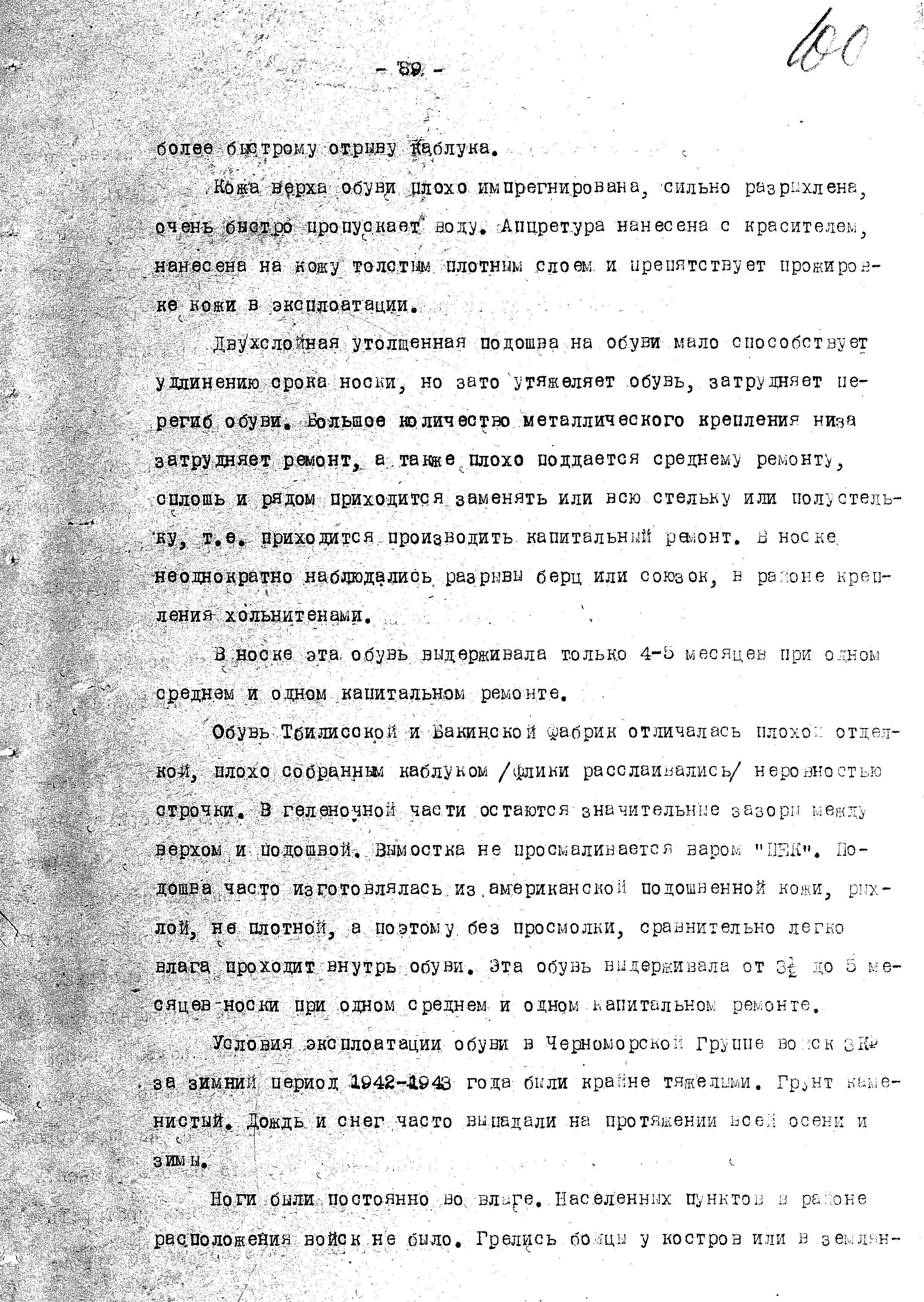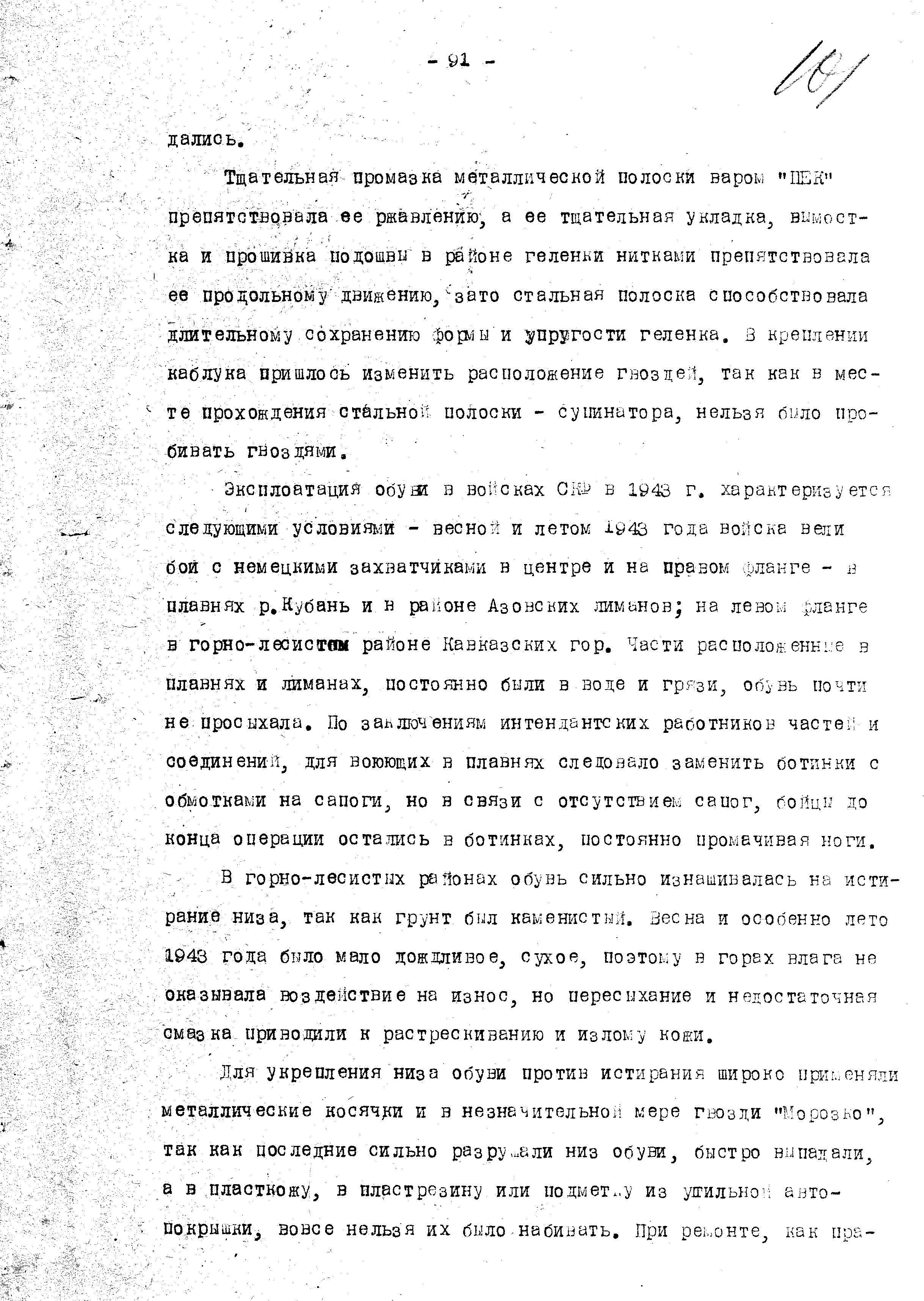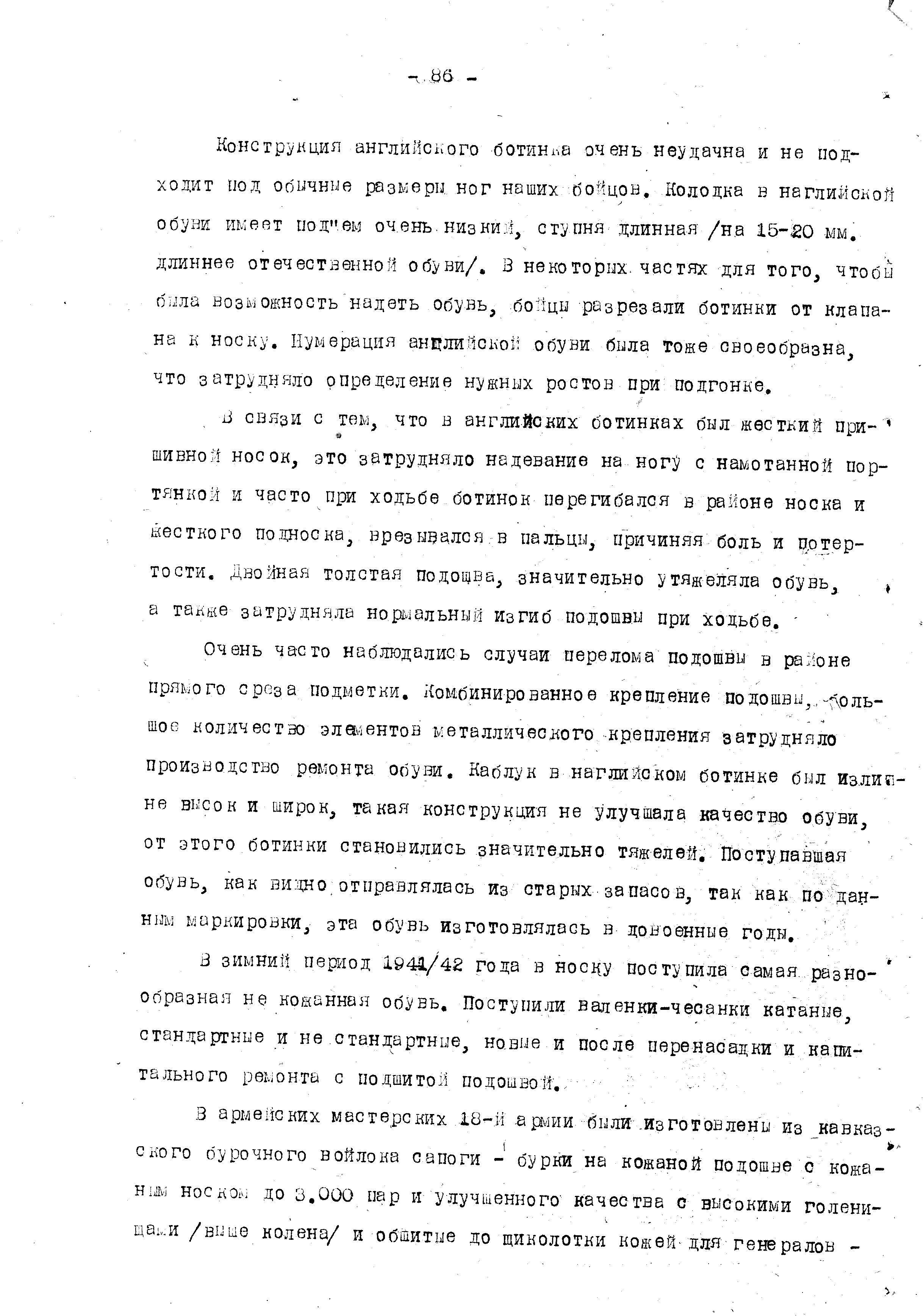 Следующий заинтересовавший момент — описание обуви, которая выдавалась бойцам и командирам Особой Приморской Армии. Так уж получилось, что помимо отечественной продукции, армия получала на снабжение ботинки, изготовленные в трёх странах: Иране, США и Англии. И это вполне объяснимо, так как в непосредственной близости от мест дислокации воинских частей ОПрА пролегал маршрут поставок импорта. Так вот, авторы доклада дают объективную оценку всем образцам обуви, как отечественным, так и иностранным, подробно рассказывают как о «плюсах», так и о «минусах» каждого образца. Не знаю, кому как, мне это показалось любопытным.