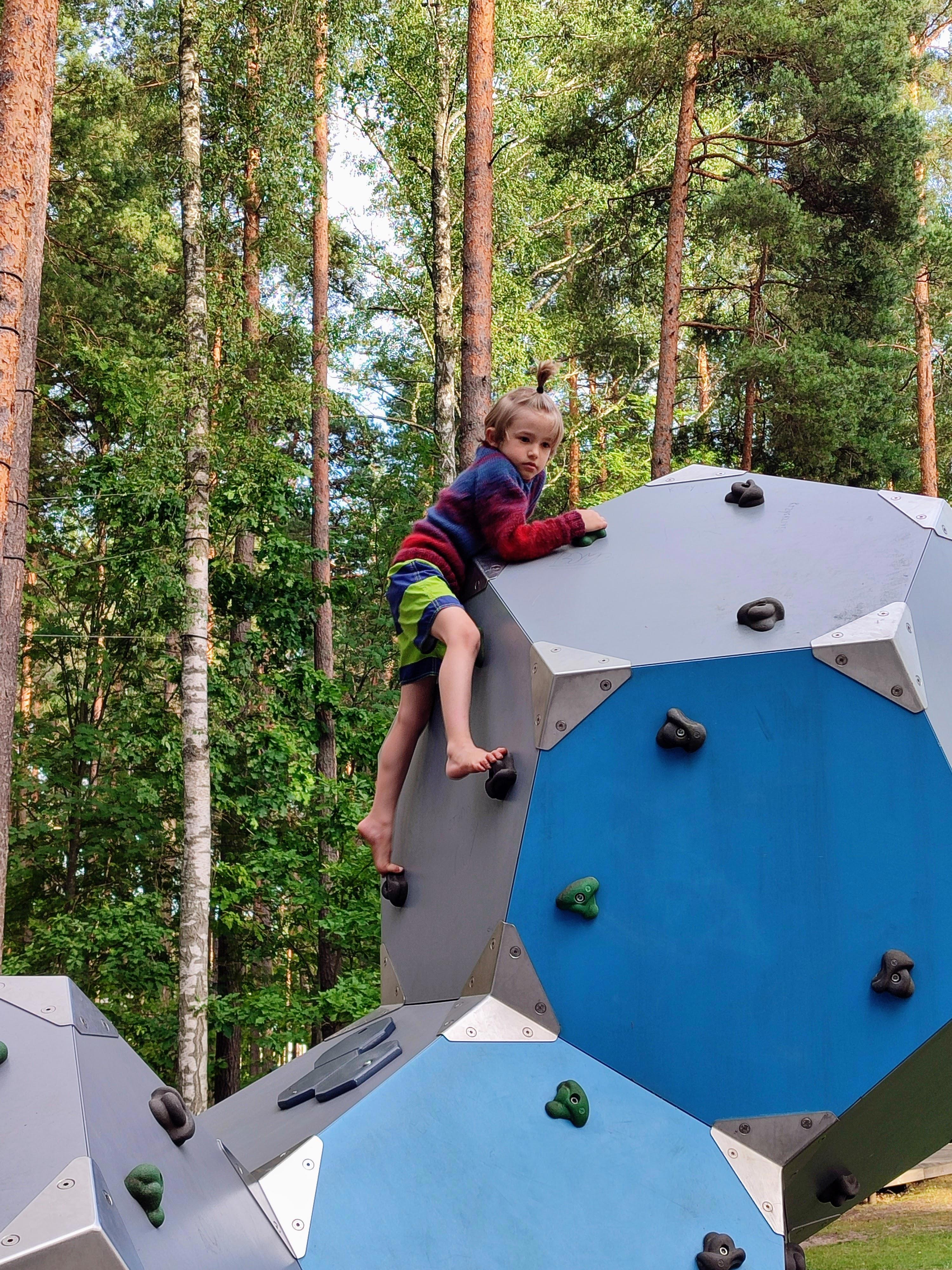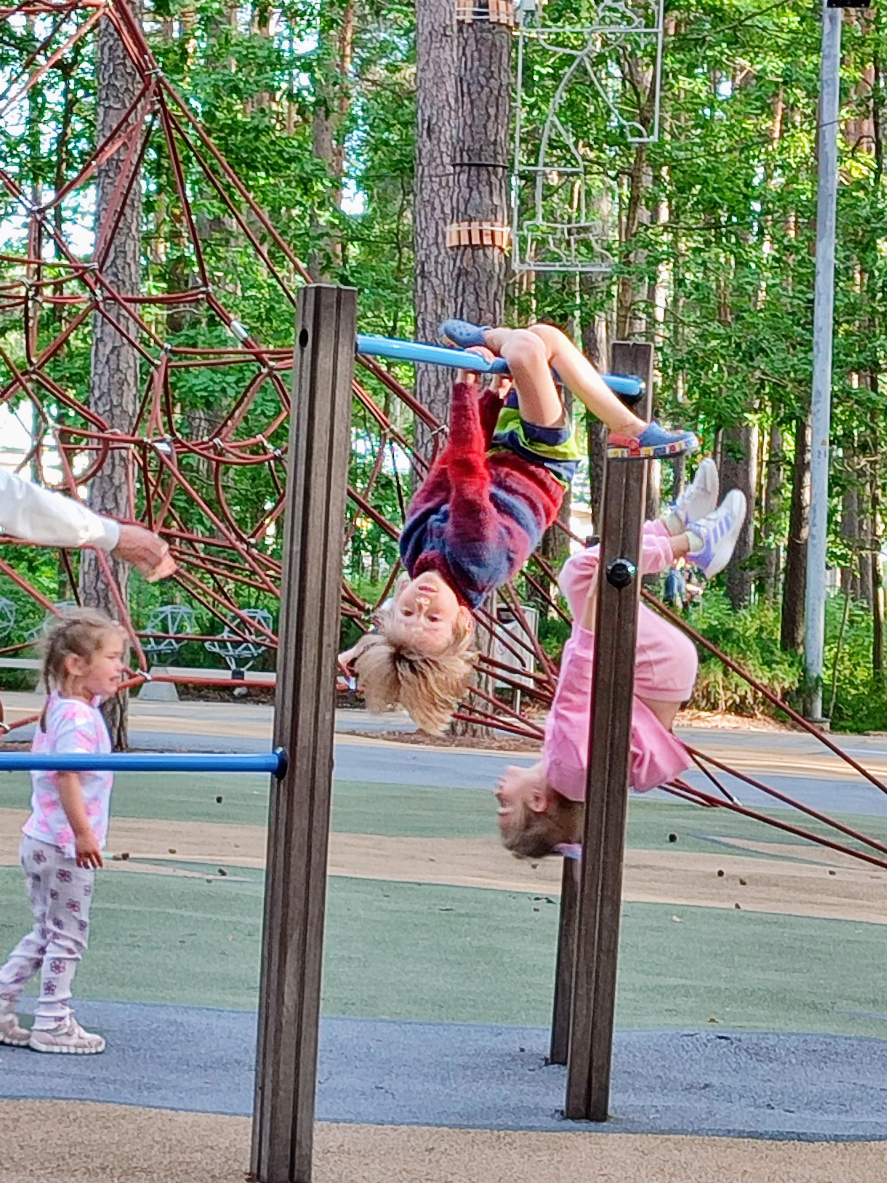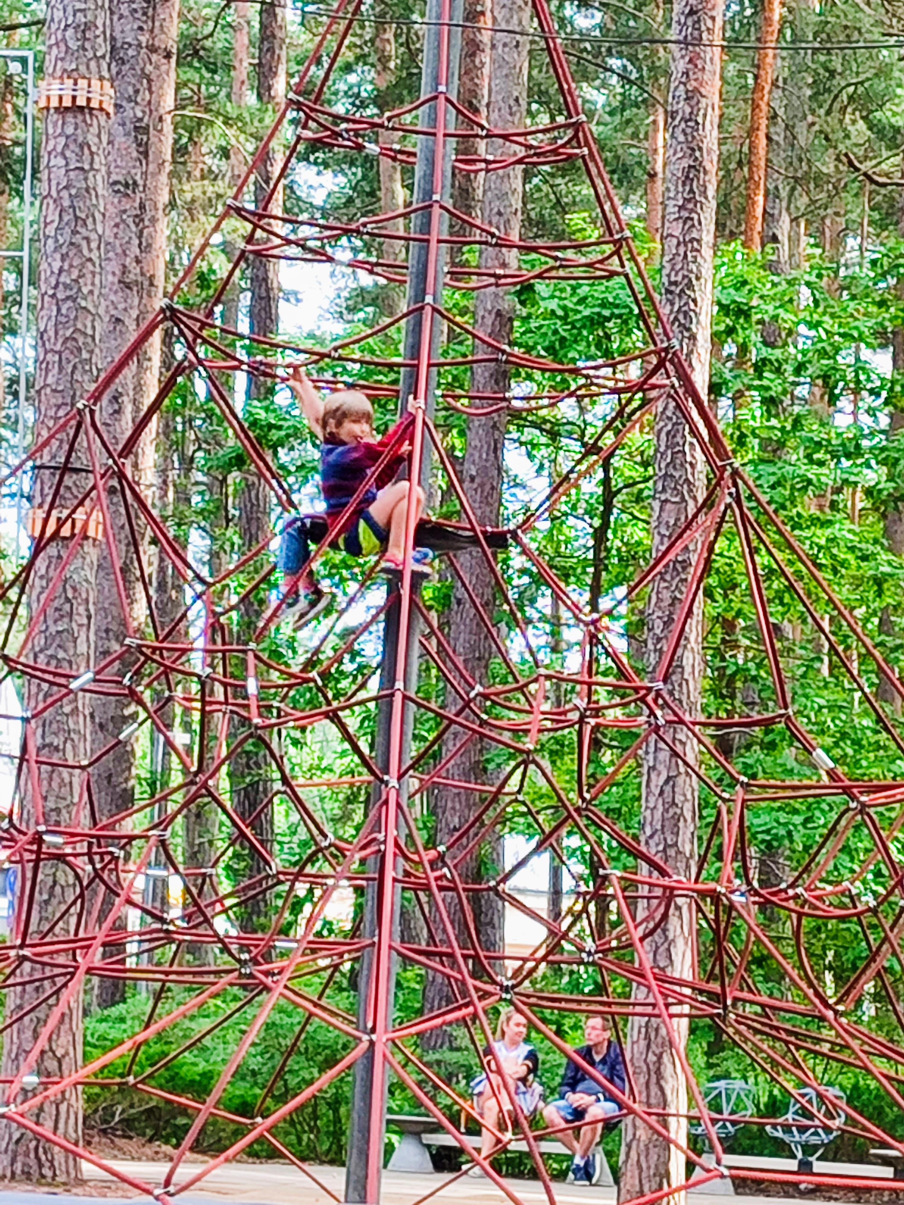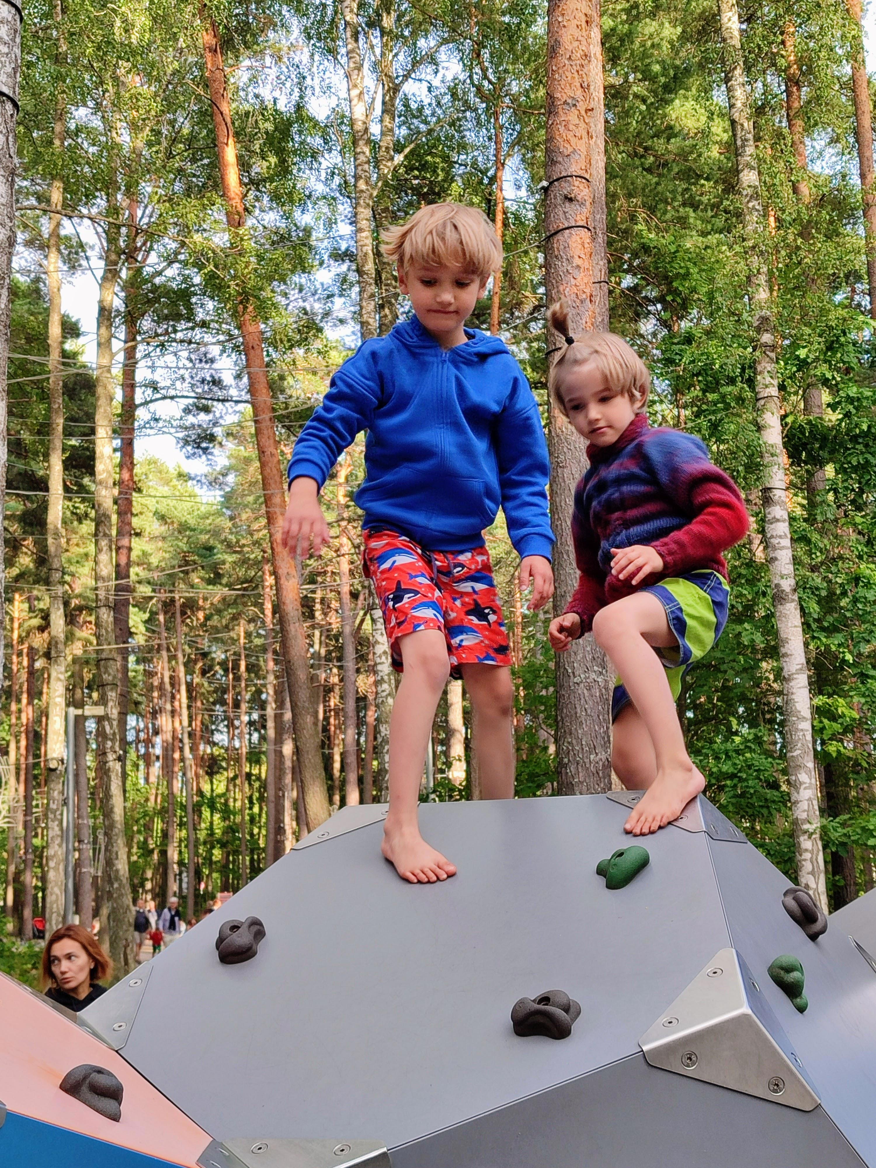 А раз такое дело, я предложила поехать в парк Дзинтари. А что, каких-то две станции и прекрасный лесопарк, полностью заточенный для детей. Правда, крутые лазалки нашим пока не светят, не доросли. Но и того, что осталось, с лихвой хватило на три часа дрыгоножества и рукомашества.