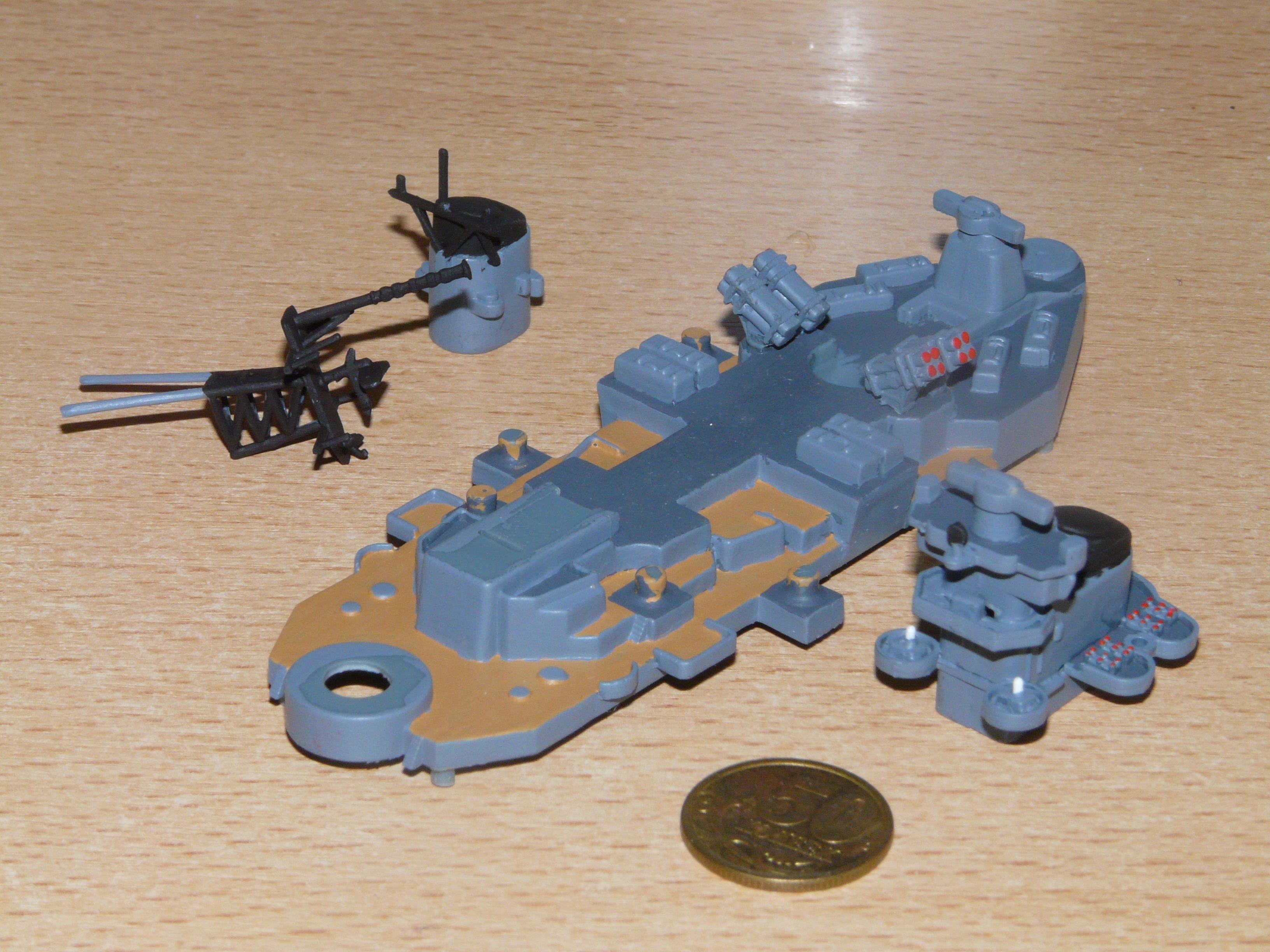Первые штрихи: мелкие детали и покраска палуб. Собиралось "из коробки", то есть без доработок вообще... хотя не удержался от того, чтобы обложиться фотографиями и таки попробовать приблизить модель к оригиналу :)