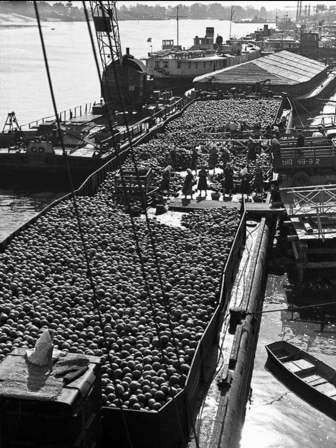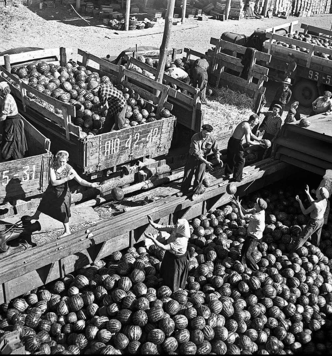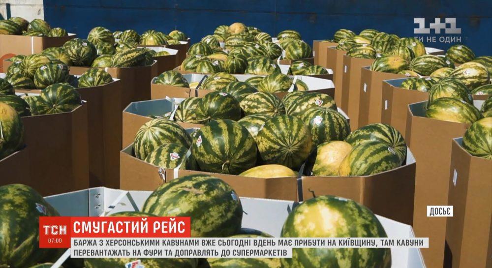 Прибытие первой баржи с херсонским арбузами в Киев.