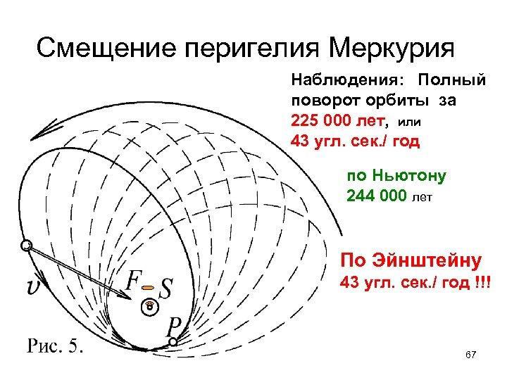 Именно эта загадочная орбита и похоронила ньютоновскую физику. Настало время новой науки, один за одним миру являлись новые пророки до тех пор, пока не пришёл один сотрудник патентного бюро и не научил всех, что пространство кривое, поэтому у Меркурия необычная орбита.