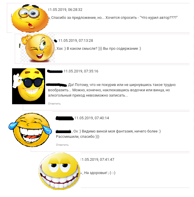 Честно. Спасибо и за такие странные реакции на моё творчество. Люди все разные и по разному проецируют свои впечатления