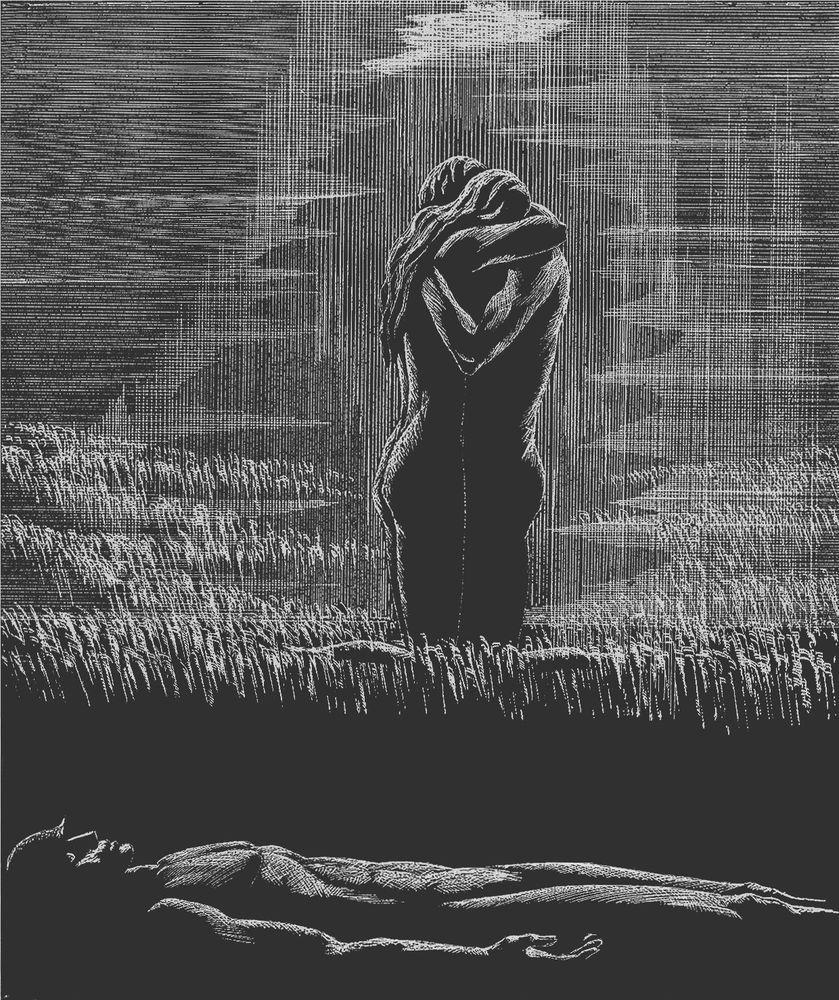 Но я смотрю на вот эти гравюры литовского художника Стасиса Красаускасаиз цикла "Вечно живые", и мне больно.