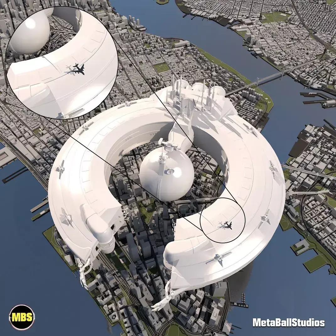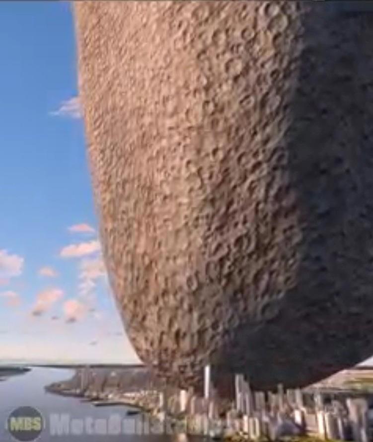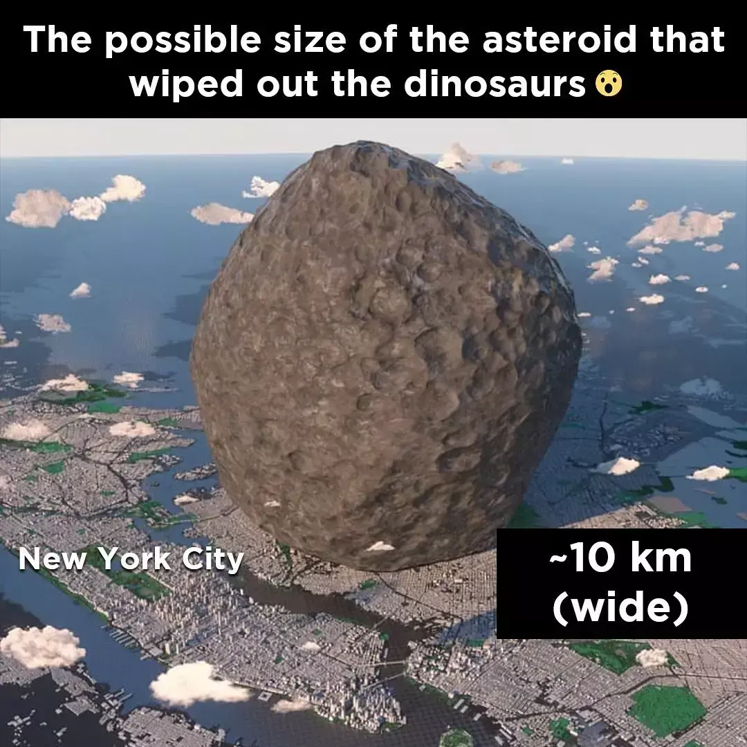 Предположительный размер астероида, погубившего динозавров на фоне Нью-Йорка