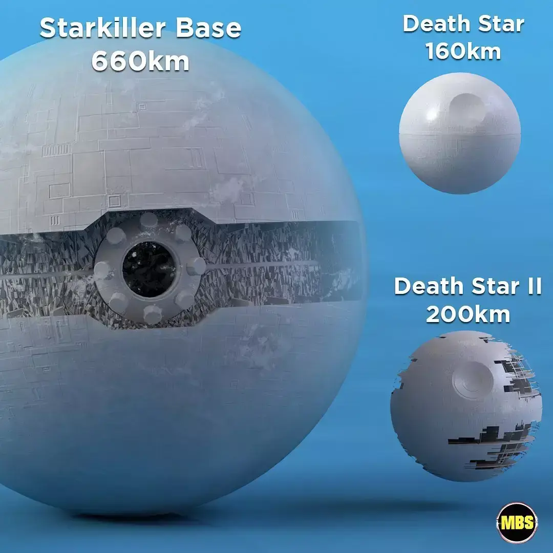 Сравнительные Размеры разных "Звёзд Смерти" во вселенной Звездных Войн