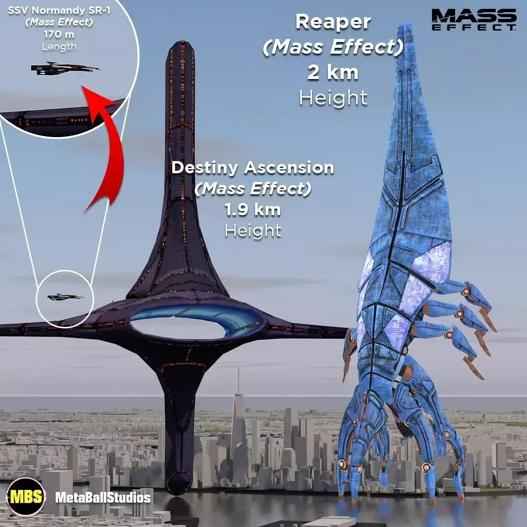 Размеры космических объектов (или даже существ) из компьютерной игры "Масс Эффект"