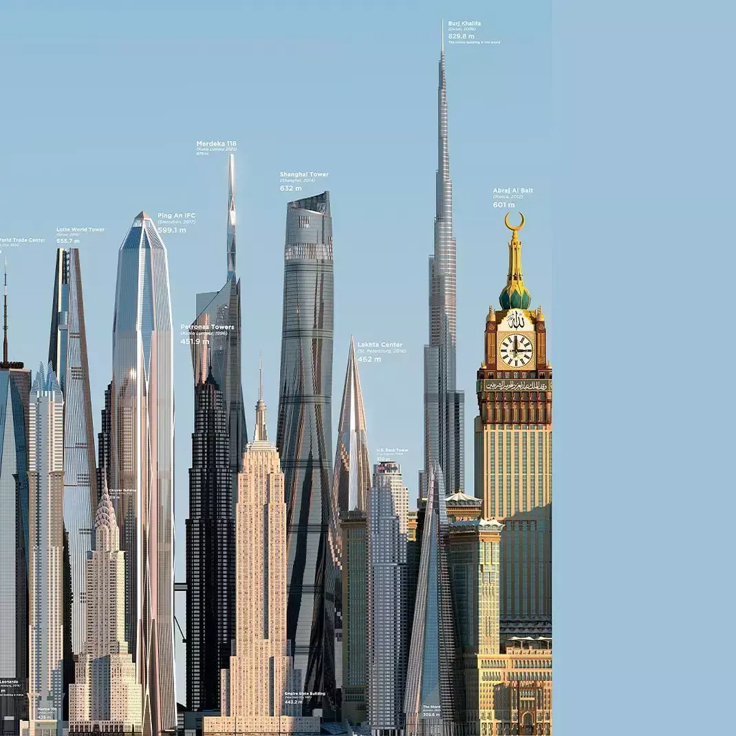 Сравнение высот существующих и проектируемых высотных зданий земли