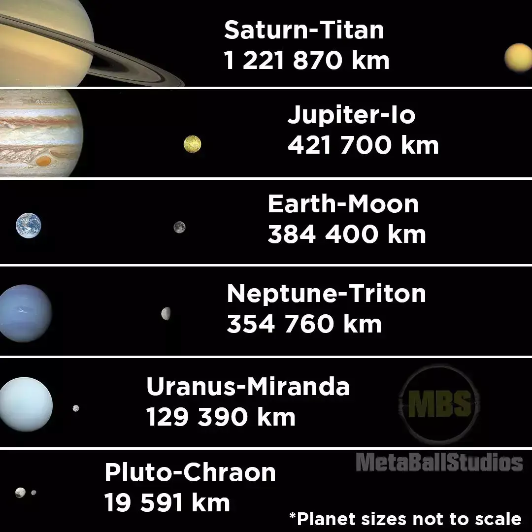 Сравнение орбит некоторых спутников планет в Солнечной Системе
