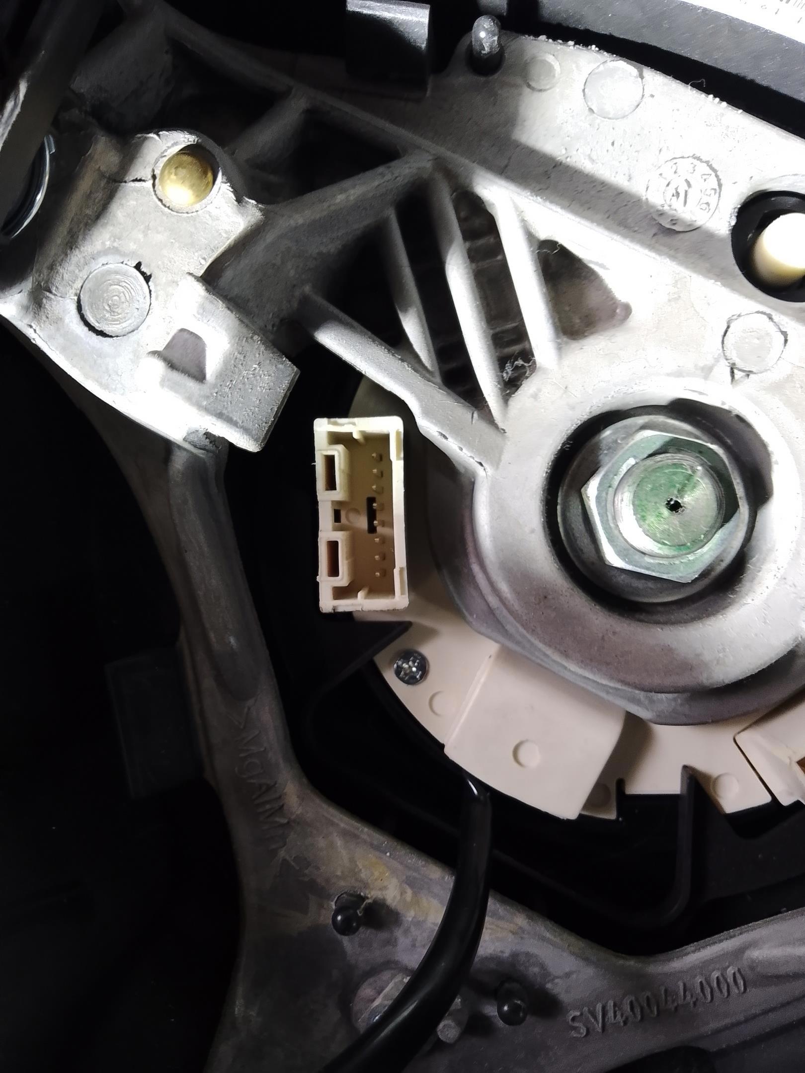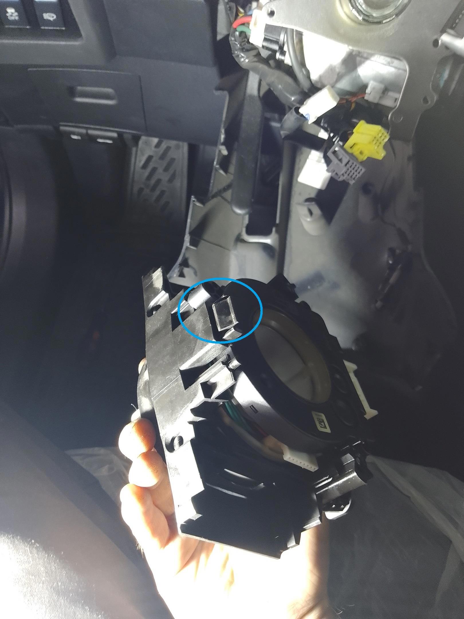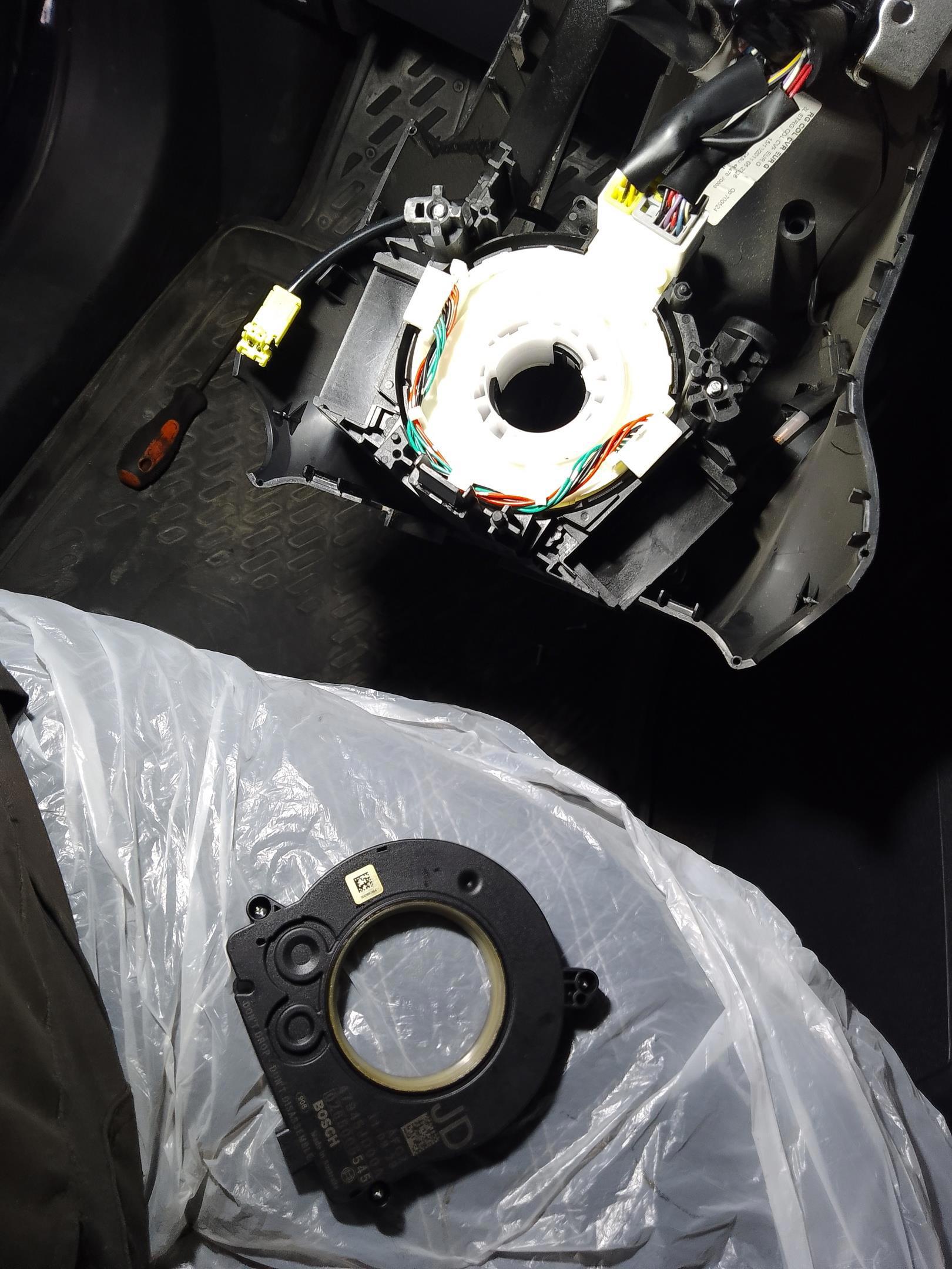 А оказалось, что помимо шлейфа, там ещё есть кольцо датчика положения руля. Откручиваем его от старого шлейфа.