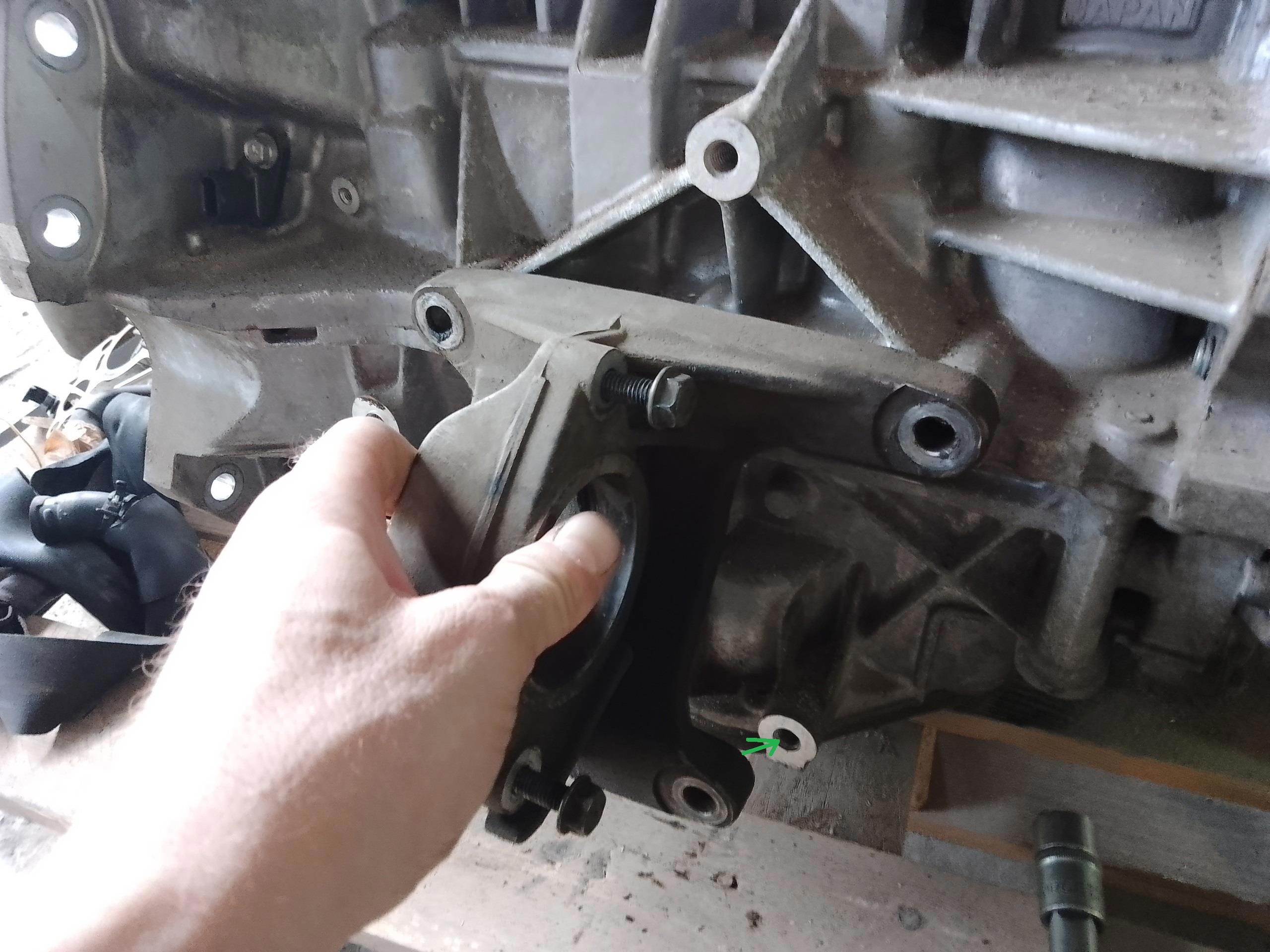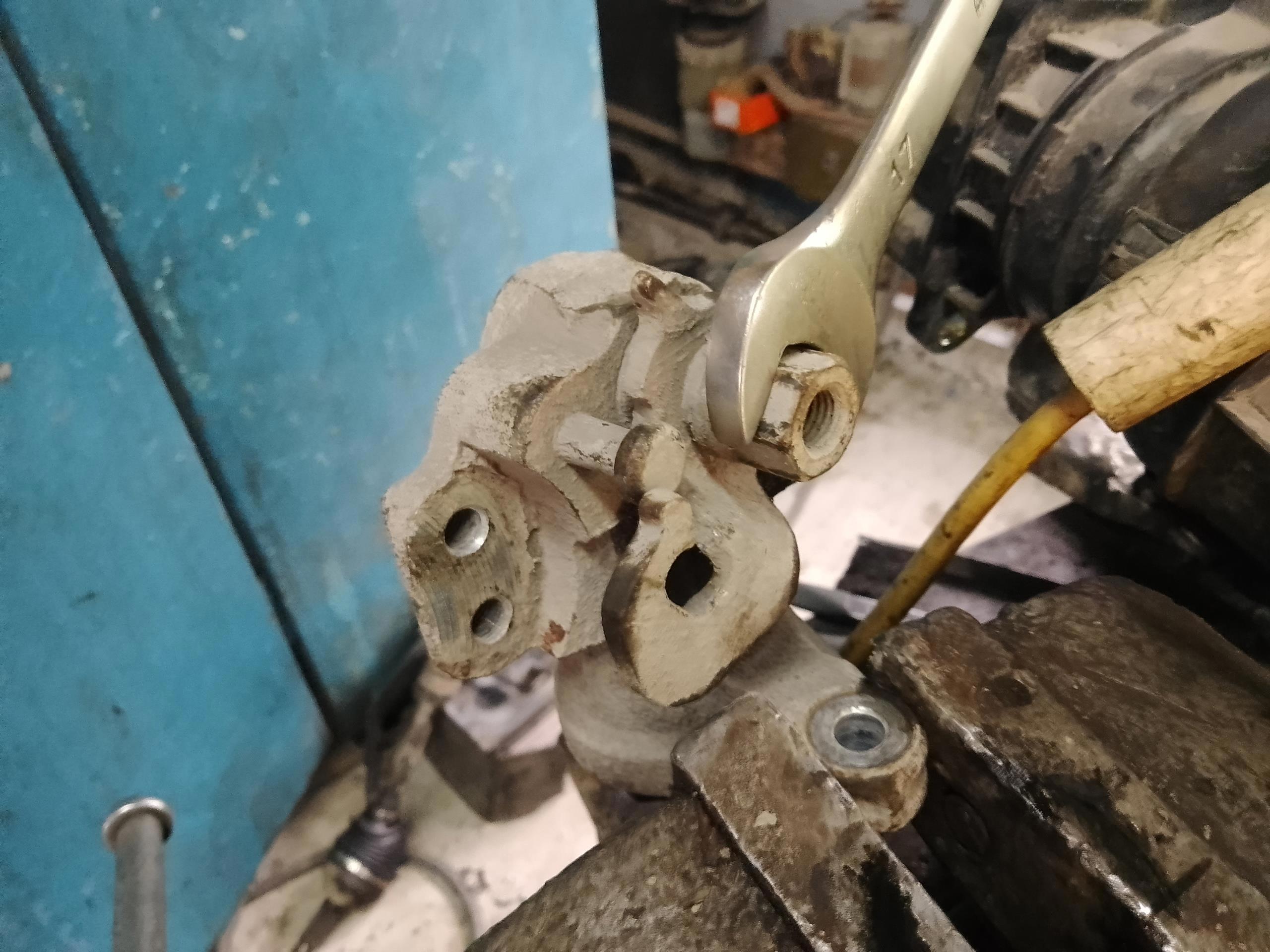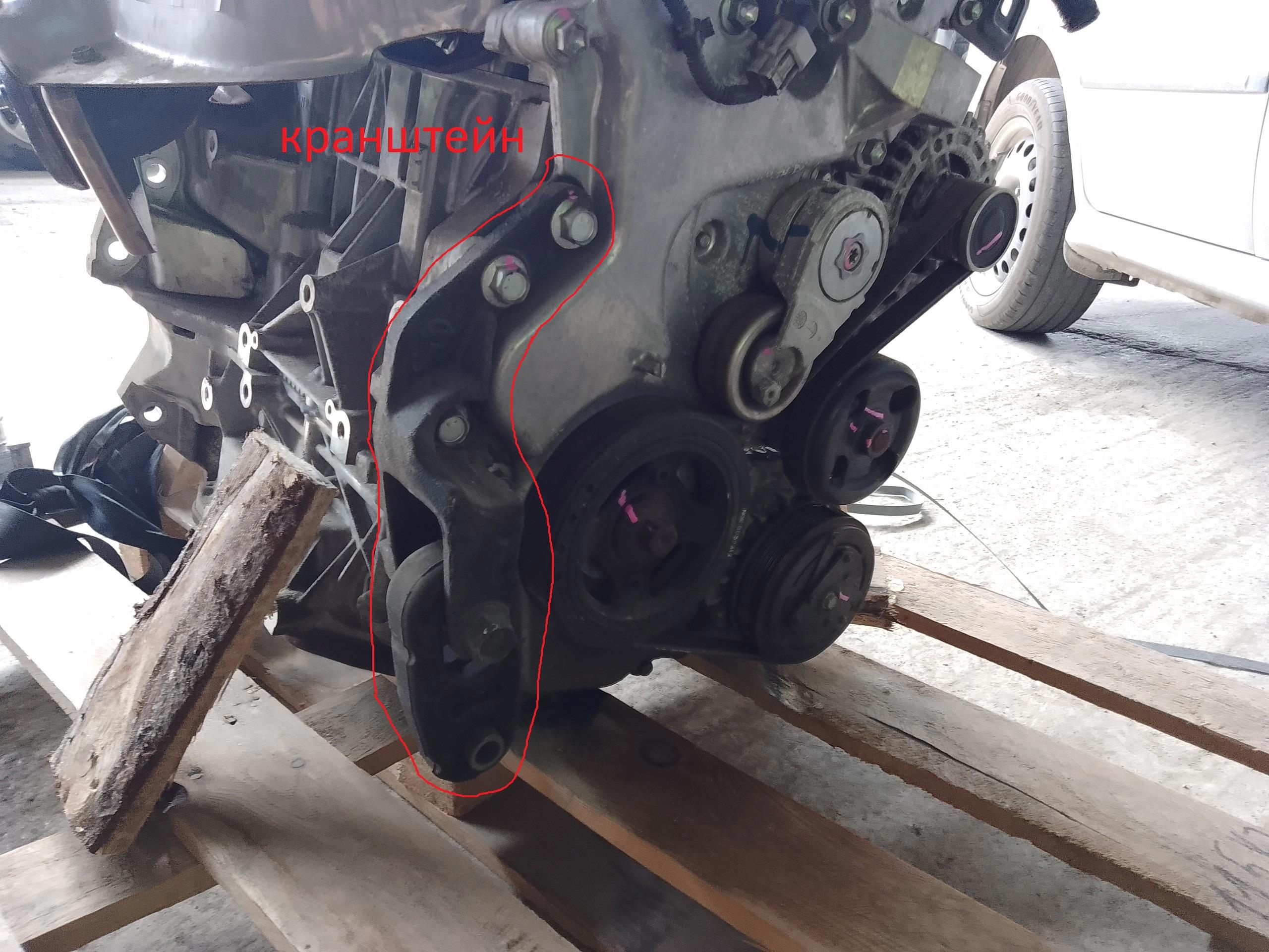 Потому что видим ЕГР. А кроме ЕГР замечаем другой впуск, отрезанную проводку, отсутствие датчика уровня масла, отсутствие маслянного теплообменника. Зато с мотором есть мозги. Которые нафиг не нужны, и из них можно сделать брелок. Ибо подцепить управление всего этого добра через старую проводку не получится. Да и вообще ничего не получится! Потому что выпускной коллектор - другой. А без него ЕГР уже не будет работать... Поэтому начинаем собирать из двух мотров один. В передней части другой кронштейн, у нас такого вообще нет, но отливка на морде под него есть. Снимаем его с нового мотора, и вкручиваем наместо болты от старого, они меньшей длинны.