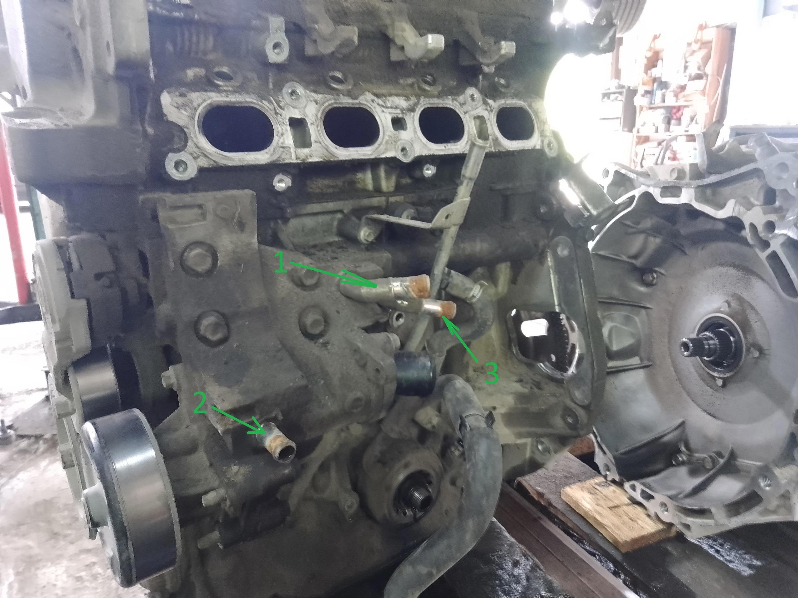 Установка мотора и подрамника заняла около часа, из которого часа я дольше прыгал туда-сюда, двигал телегу, чтоб попасть. А теперь про рейку. Эта - от нового мотора, смотрим на номер форсунок.