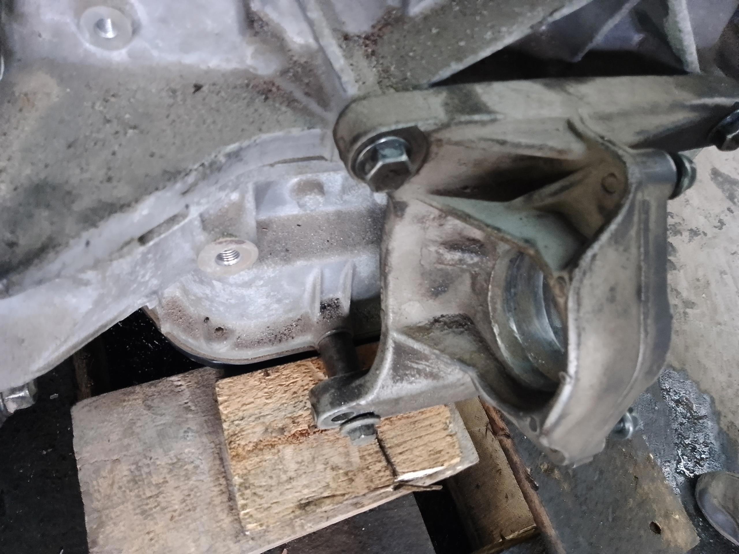 А теперь очередная подстава. Разные полуподдоны. У меня сначала мелькнула дикая мысль заменить полуподдон, но потом я понял что это срака та ещё - надо снимать переднюю крышку, а это значит что надо фиксировать ГРМ, чтоб он не разбежался, и делать это всё меня совершенно не климатило. Поэтому было принято решение колхозить. Наглядно отличие поддонов при прикладывании к новому мотору корпуса подвесного подшипника, который не стрелял по нижним точкам крепления.