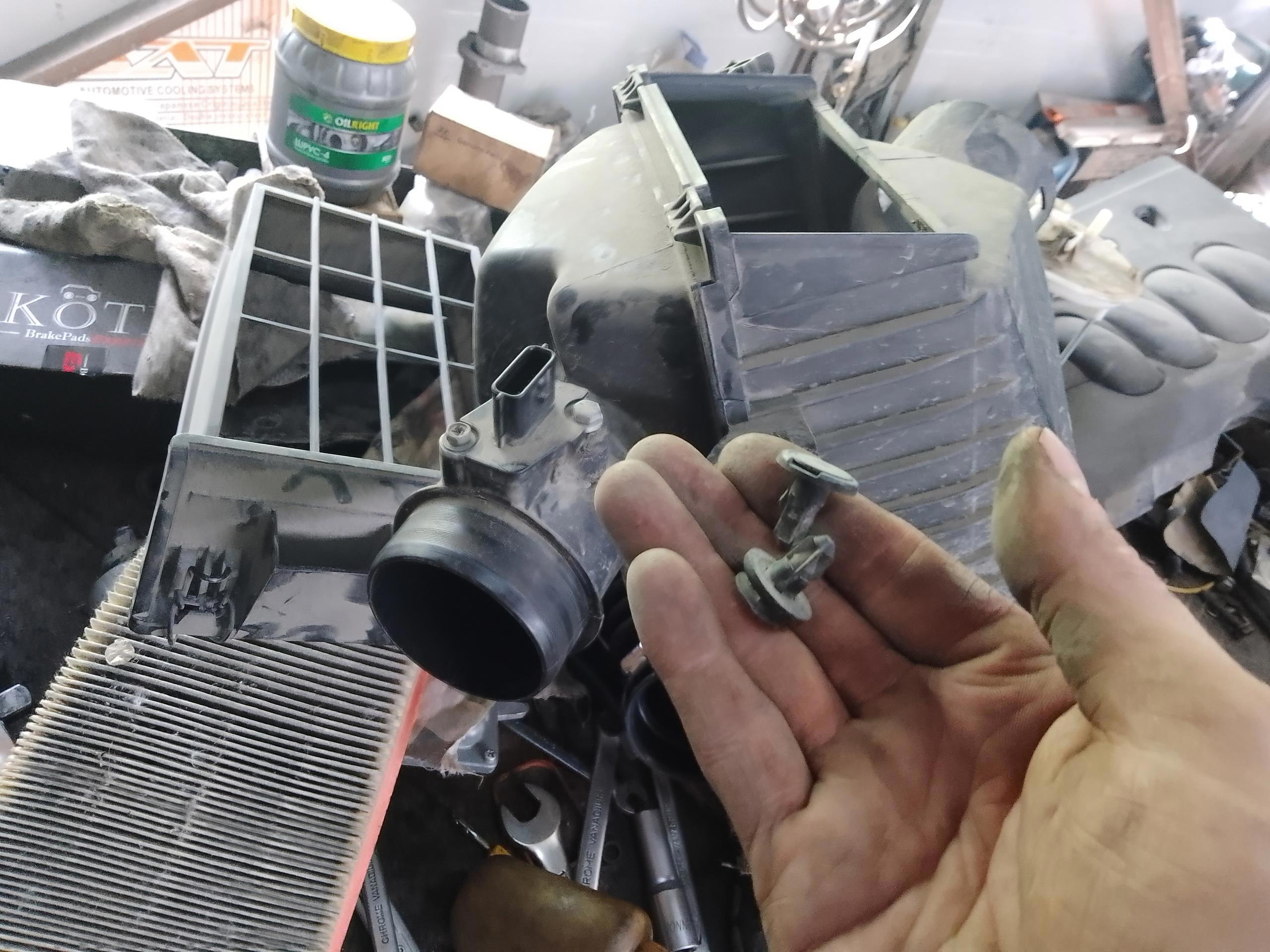 Собрался ставить короб фильтра: слышу, что-то в нём брякает. Как в погремушке. Вынул старый фильтр, его там на фоне видно, что ему хана, и вытряхнул из короба два поломанных пистона. Это у кого такой юмор не смешной?