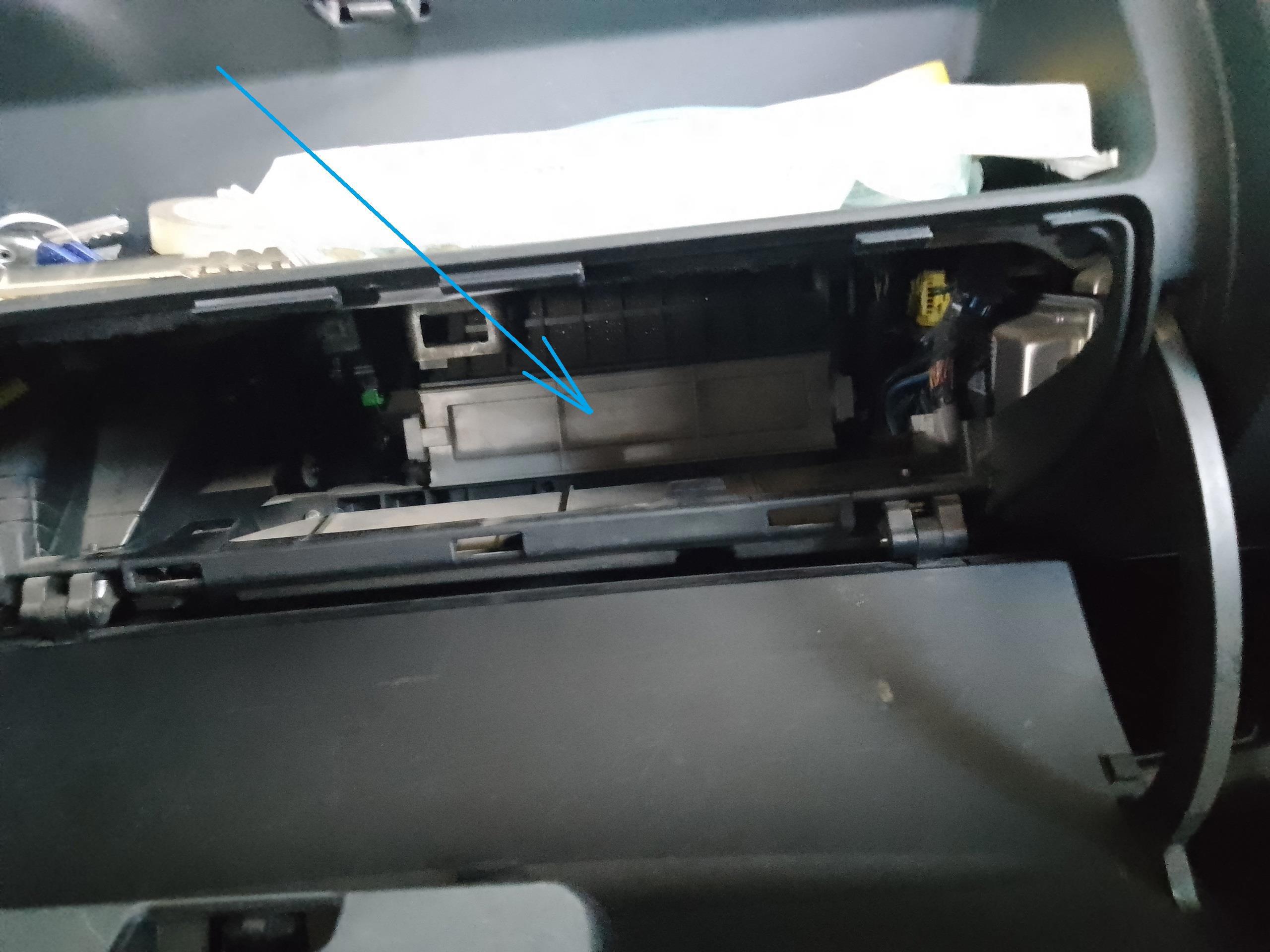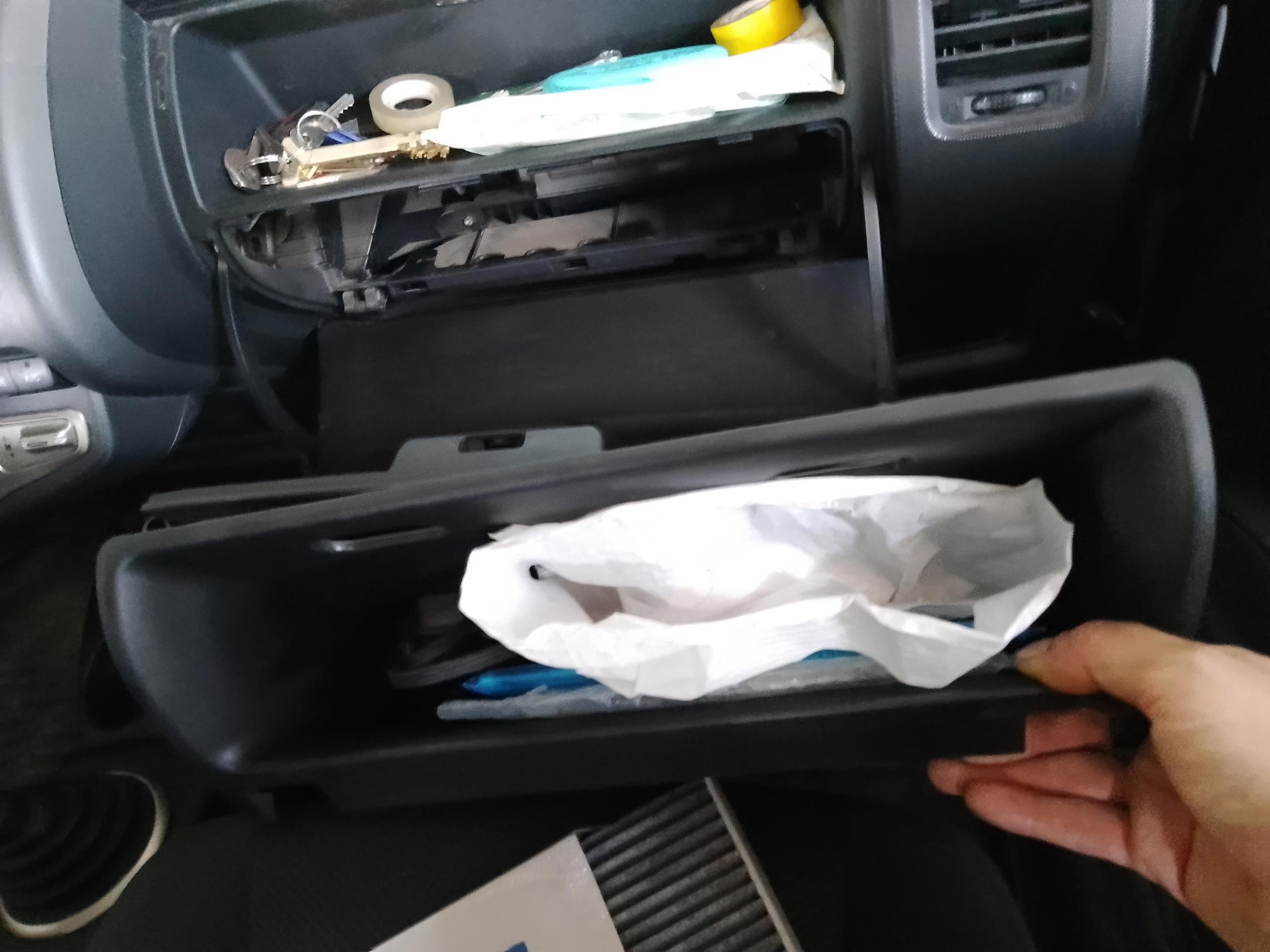 Замена салонника делается элементарно. Открываем бардачек, и ищем вот такие пазы: