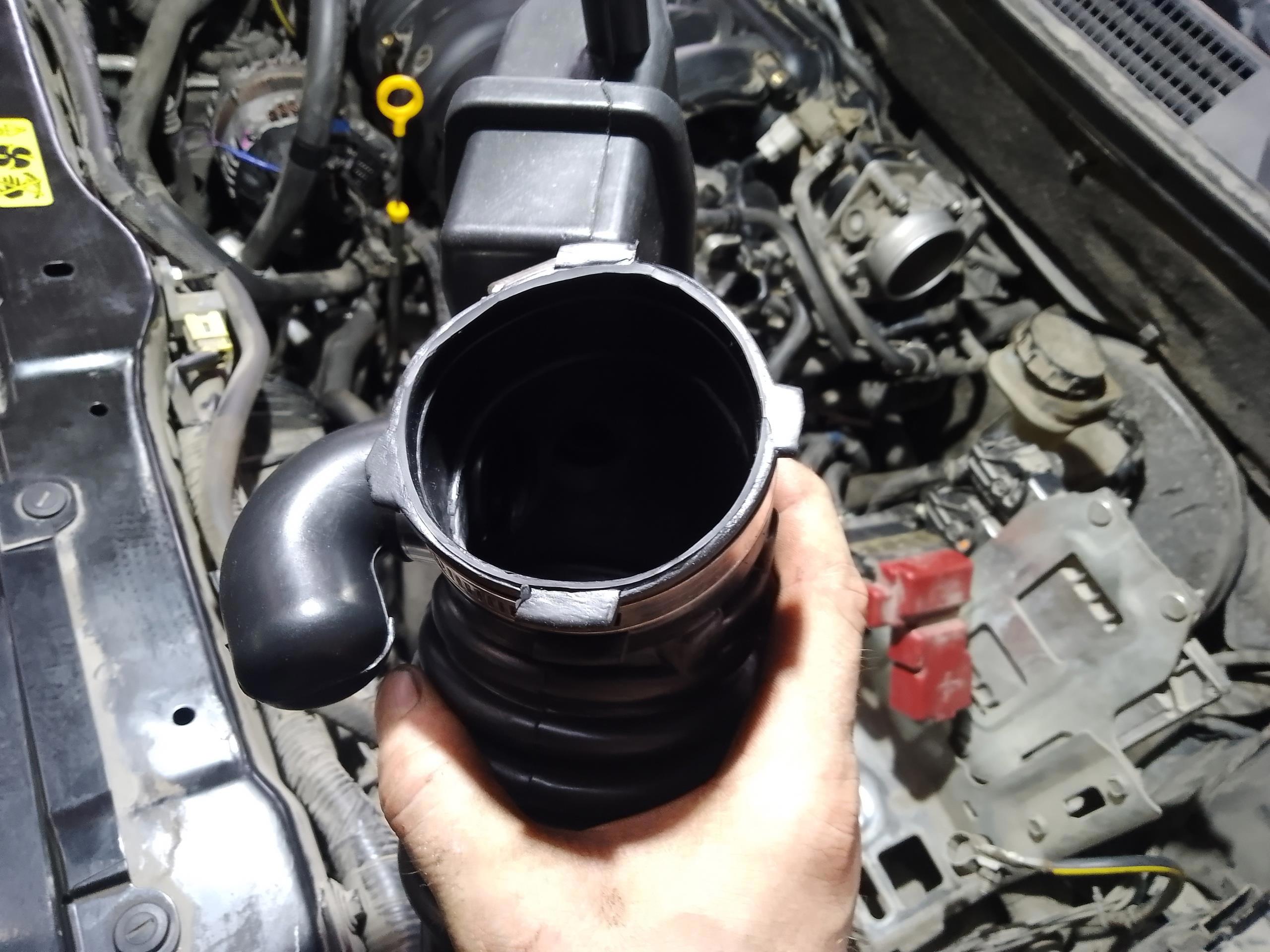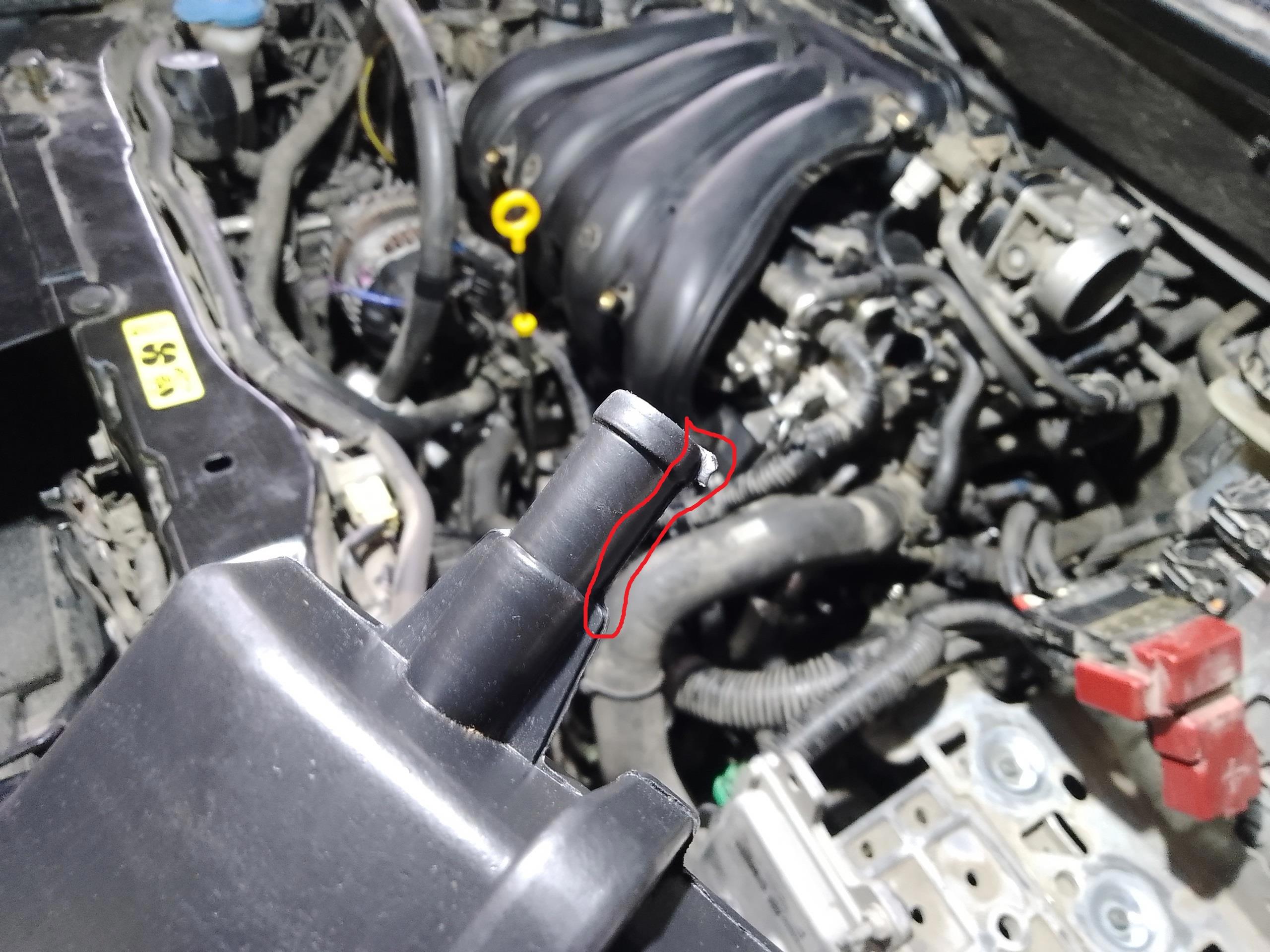 Дырка во впускном шланге около дросселя. Правда, мотористы сказали, что MR20 в принципе жрёт масло как за здрасти, и не точится в ремонт. Мотор - одноразовый. Как всё современное.