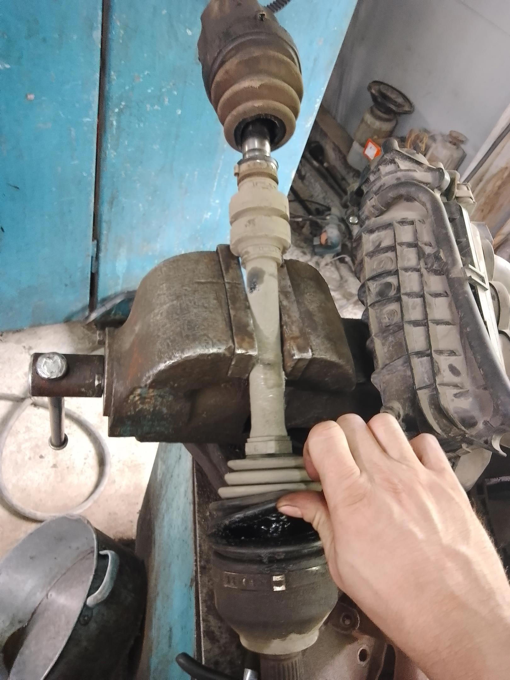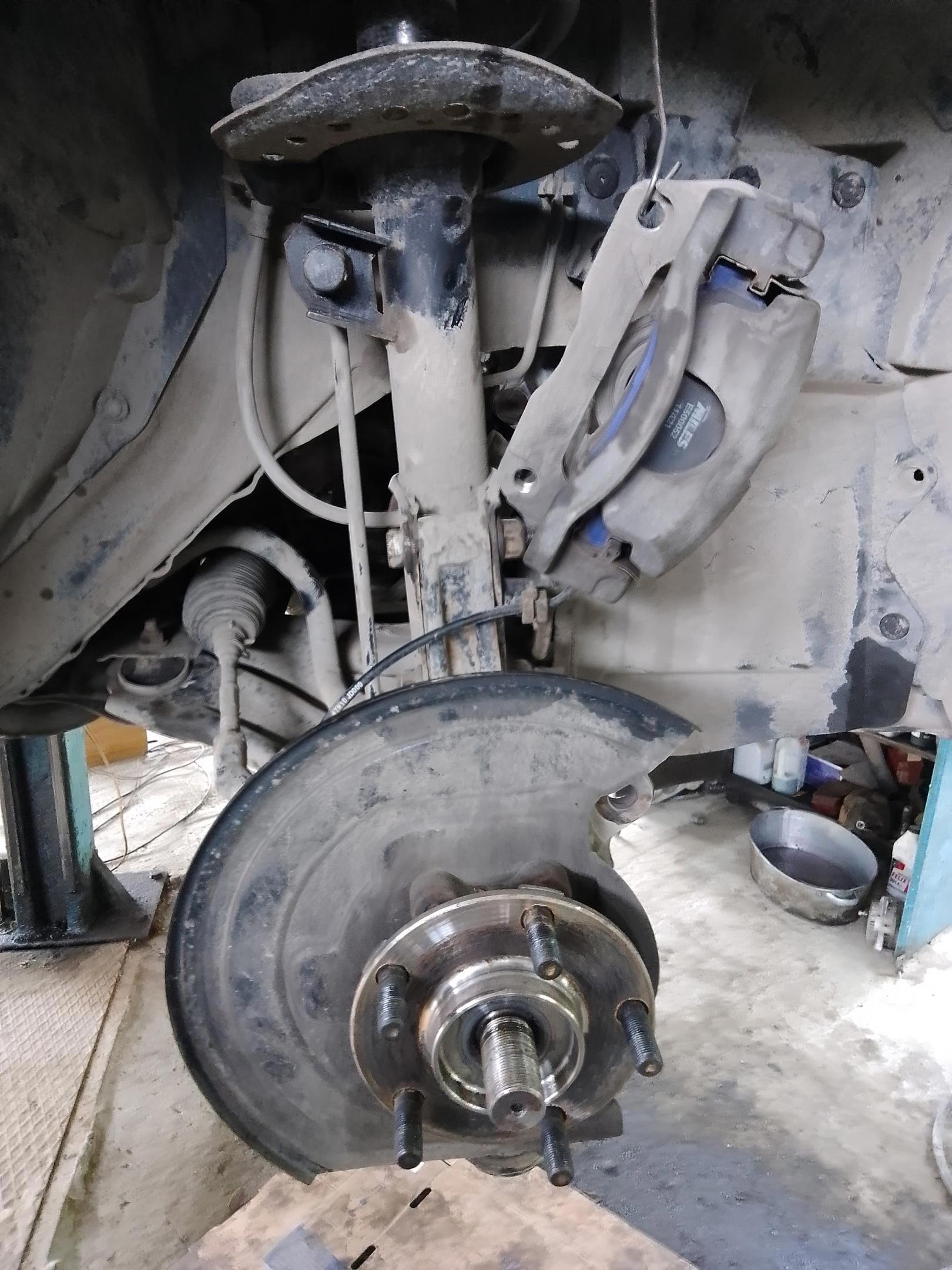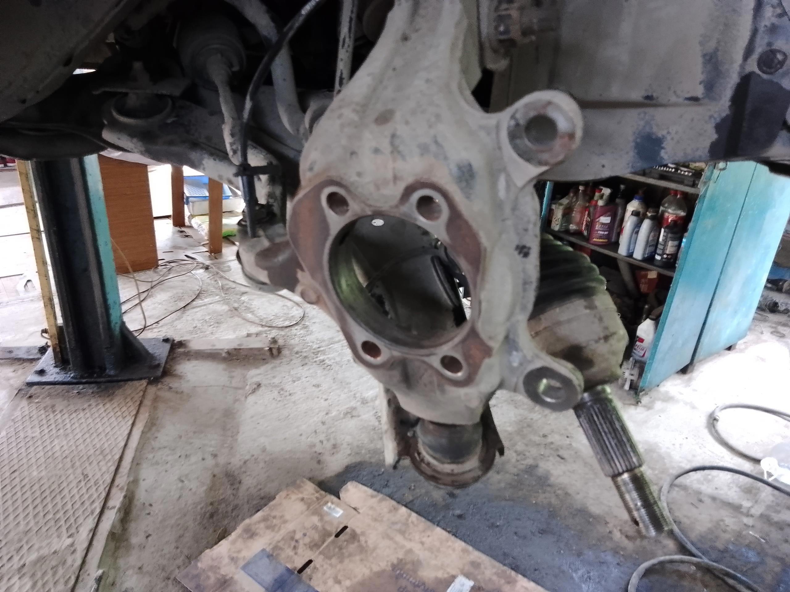 Нефиг было покупать японский мотор на европейскую машину, да ещё и от другой модели. Мотор почти готов к установке, ждём заказанные запчасти, а в это время занимаемся всякой ерундой: меняем задние колодки, задние втулки подрамника (болезнь кашкаев и жуков), и ставим один новый пыльник на ШРУС левой полуоси. Второй ещё не принесли. Немного порвалось...