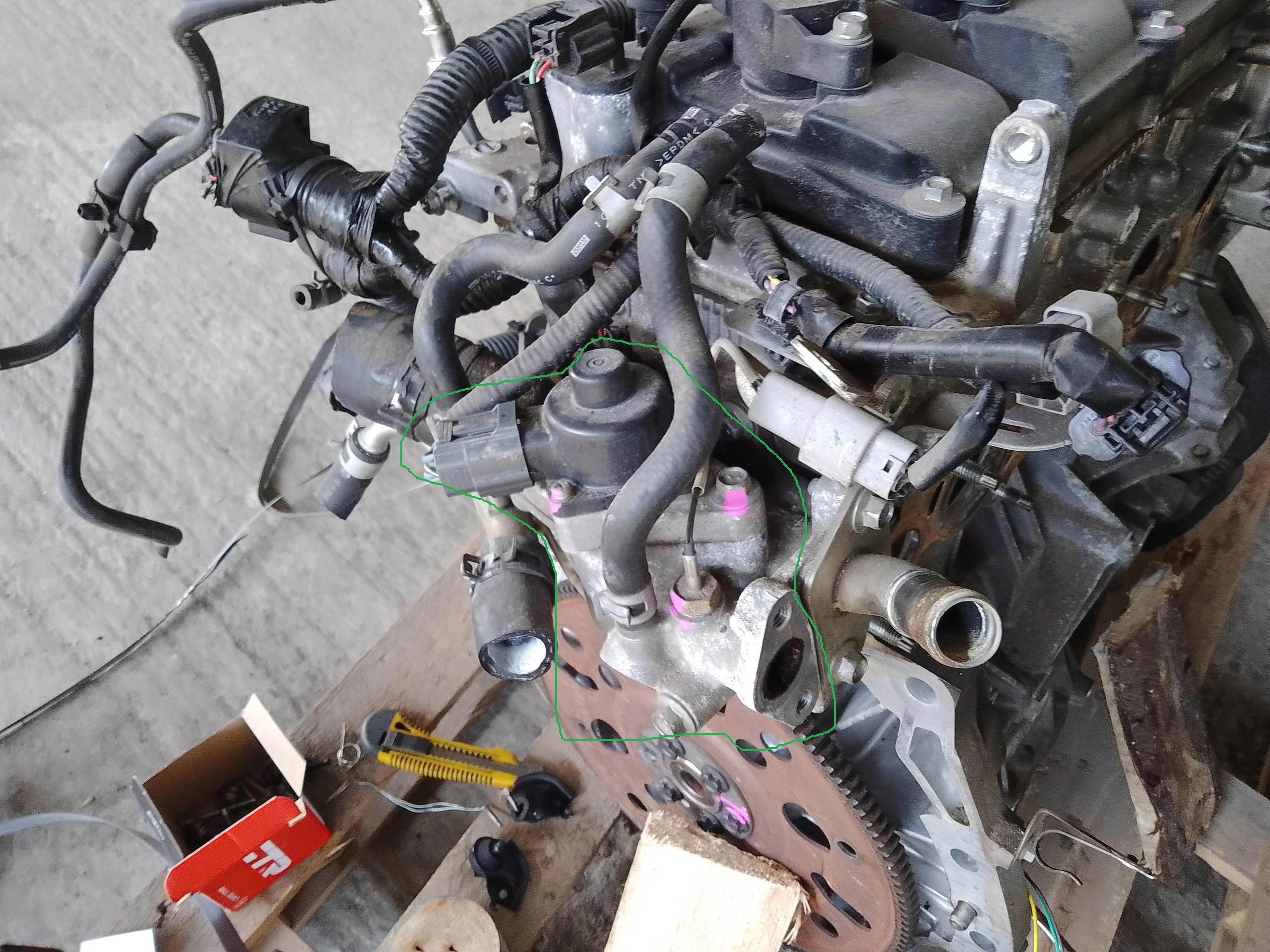 А для замены это фигни надо снять генератор. И да, именно в ней под черным фланцем первый термостат. Подготовил новый мотор к состыковке с коробкой.
