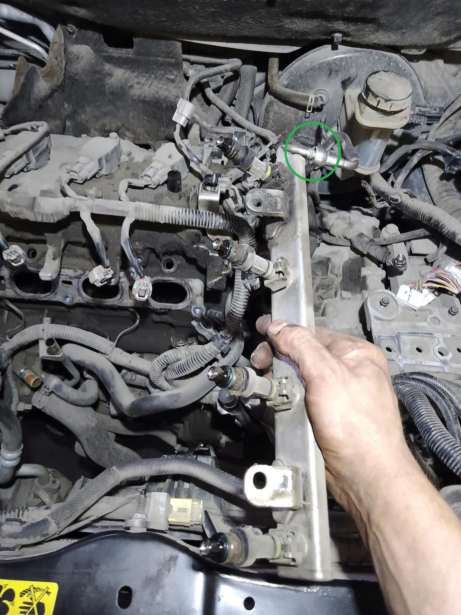Отцепить топливный шланг от рейки не получилось (да не очень-то и хотелось, на самом деле, и не зря, но об этом позже). Тут фиксатор по типу Фордовского, который можно разомкнуть свернутым в трубочку жестким пластиком или металлом. Но мне было лениво. Поэтому рейка остается на машине.