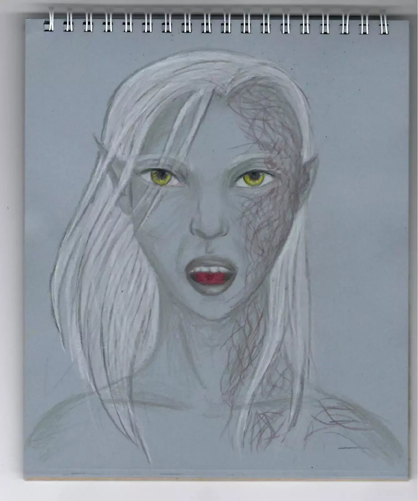Эрельтана. Дроу, идущая своим сложным и трагичным путем. Мне не хватило мастерства изобразить обширные ожоги, которые искалечили её тело и душу.