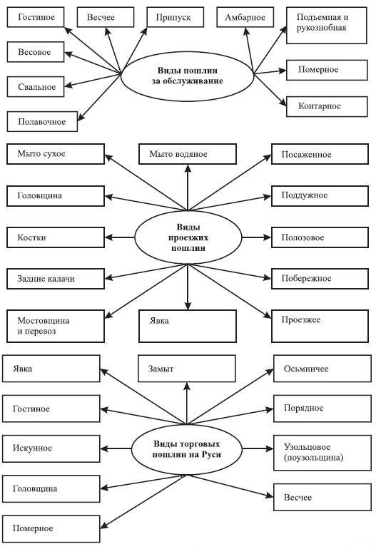 Во-вторых, собственно торговые пошлины: за прибытие, за стоимость товара, за его объем, за его вес, за отдельно облагаемые товары (например, меди или соли), за количество мер ржи, гороха етс.